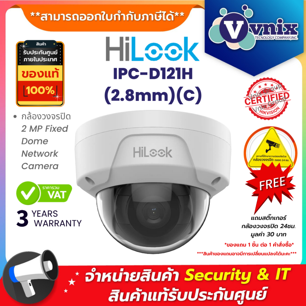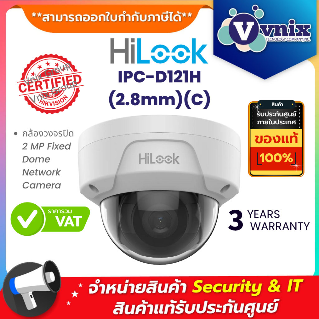 Hilook IPC-D121H (2.8mm)(C) กล้องวงจรปิด IP 2ล้านพิกเซล Fixed Dome Network Camera ประกัน 3ปี By Vnix Group