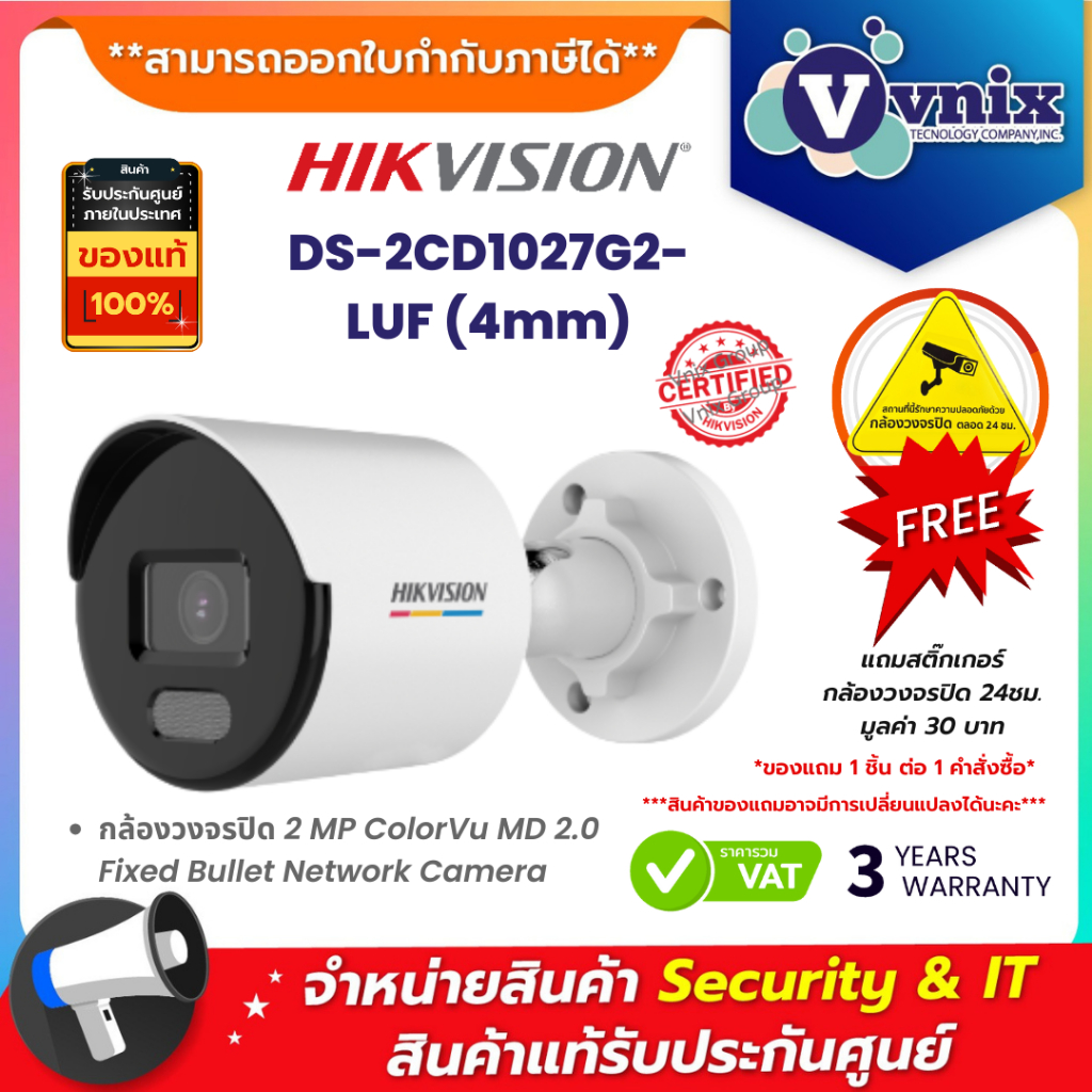 DS-2CD1027G2-LUF(4mm) รุ่นแทนDS-2CD1027G0-LUF กล้องวงจรปิด Hikvision By Vnix Group