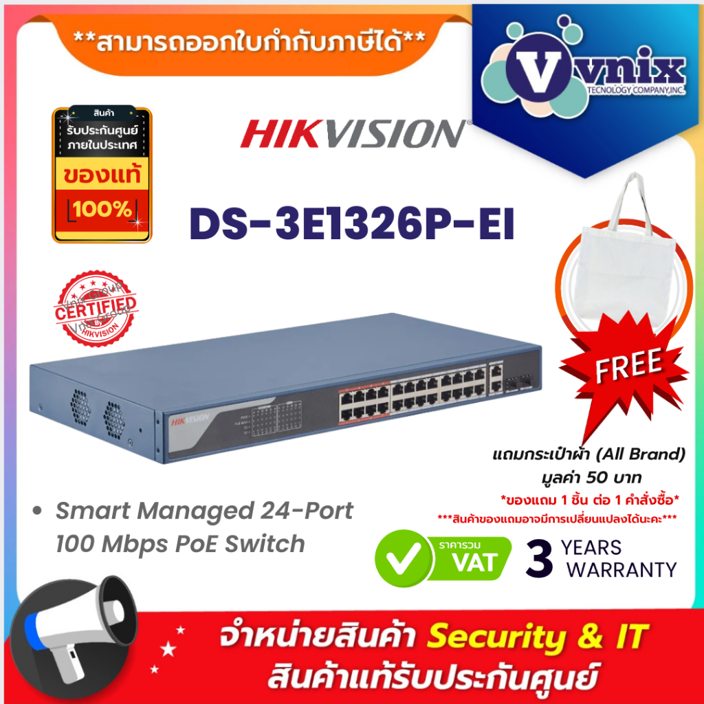 DS-3E1326P-EI Hikvision Smart Managed 24-Port 100 Mbps PoE Switch By Vnix Group