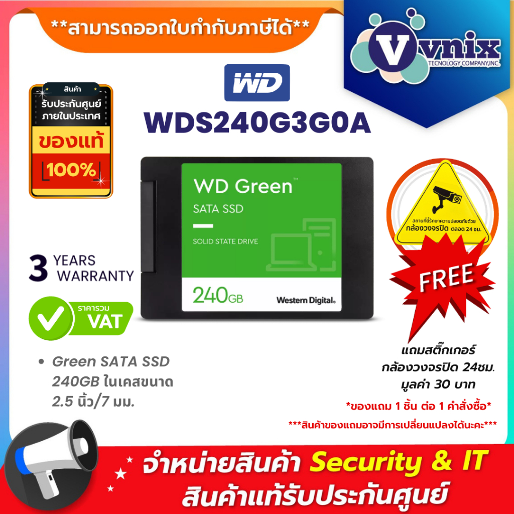 WD GREEN 240GB เอสเอสดี SSD 2.5 INCH SATA3 (WDS240G3G0A) รับประกัน 3 ปี By Vnix Group