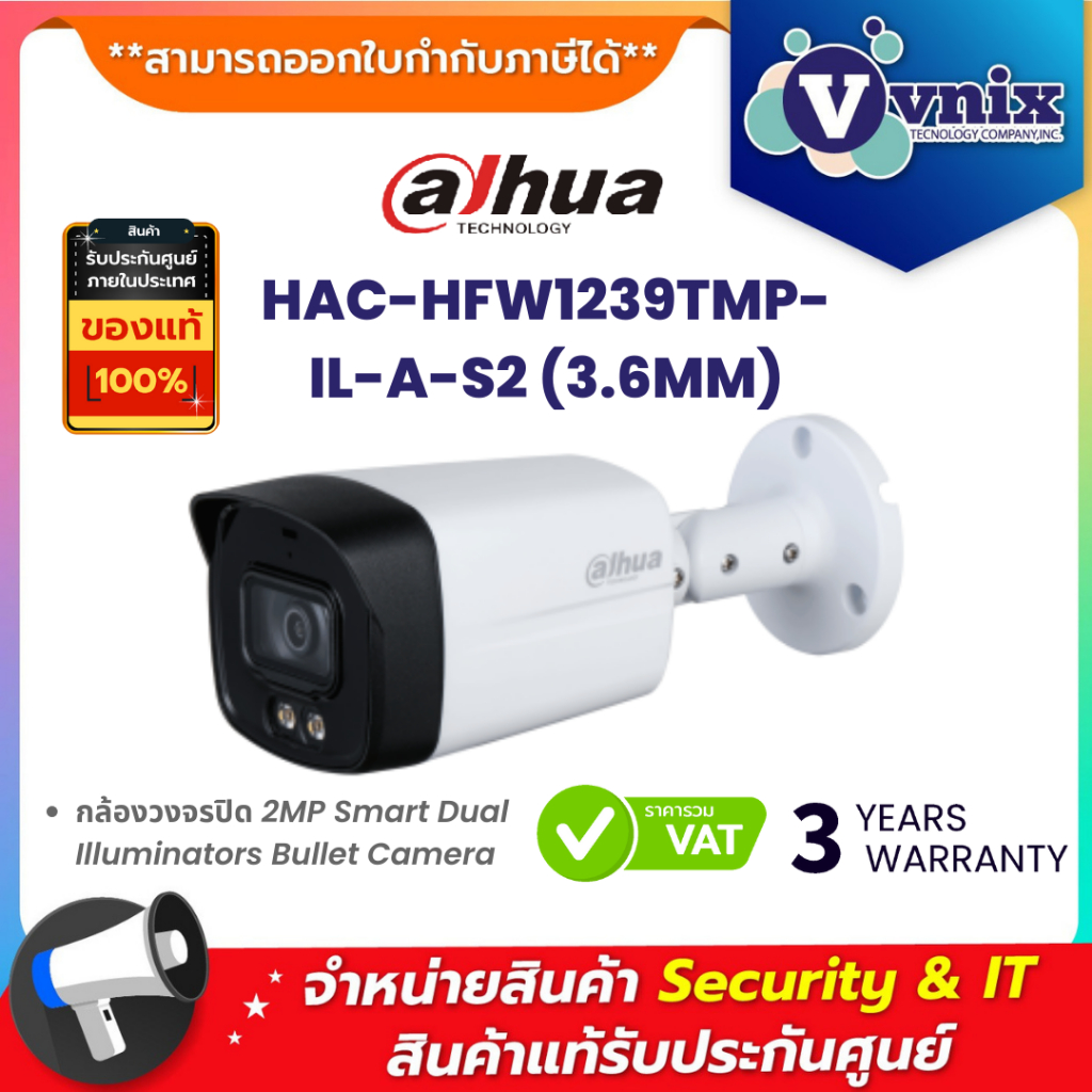 HAC-HFW1239TM-IL-A-S2(3.6MM) / HAC-HFW1239TMP-IL-A-S2(3.6MM) Dahua กล้องวงจรปิด 2MP By Vnix Group