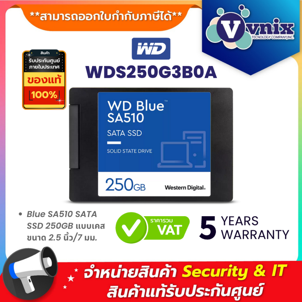 WD BLUE SA510 250GB เอสเอสดี 2.5 INCH SATA3 (WDS250G3B0A) รับประกัน 5 ปี By Vnix Group