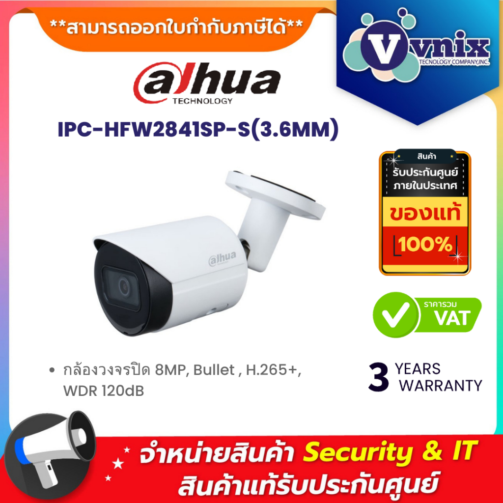 IPC-HFW2841SP-S(3.6MM) Dahua กล้องวงจรปิด 8MP Bullet H.265+ WDR 120dB By Vnix Group