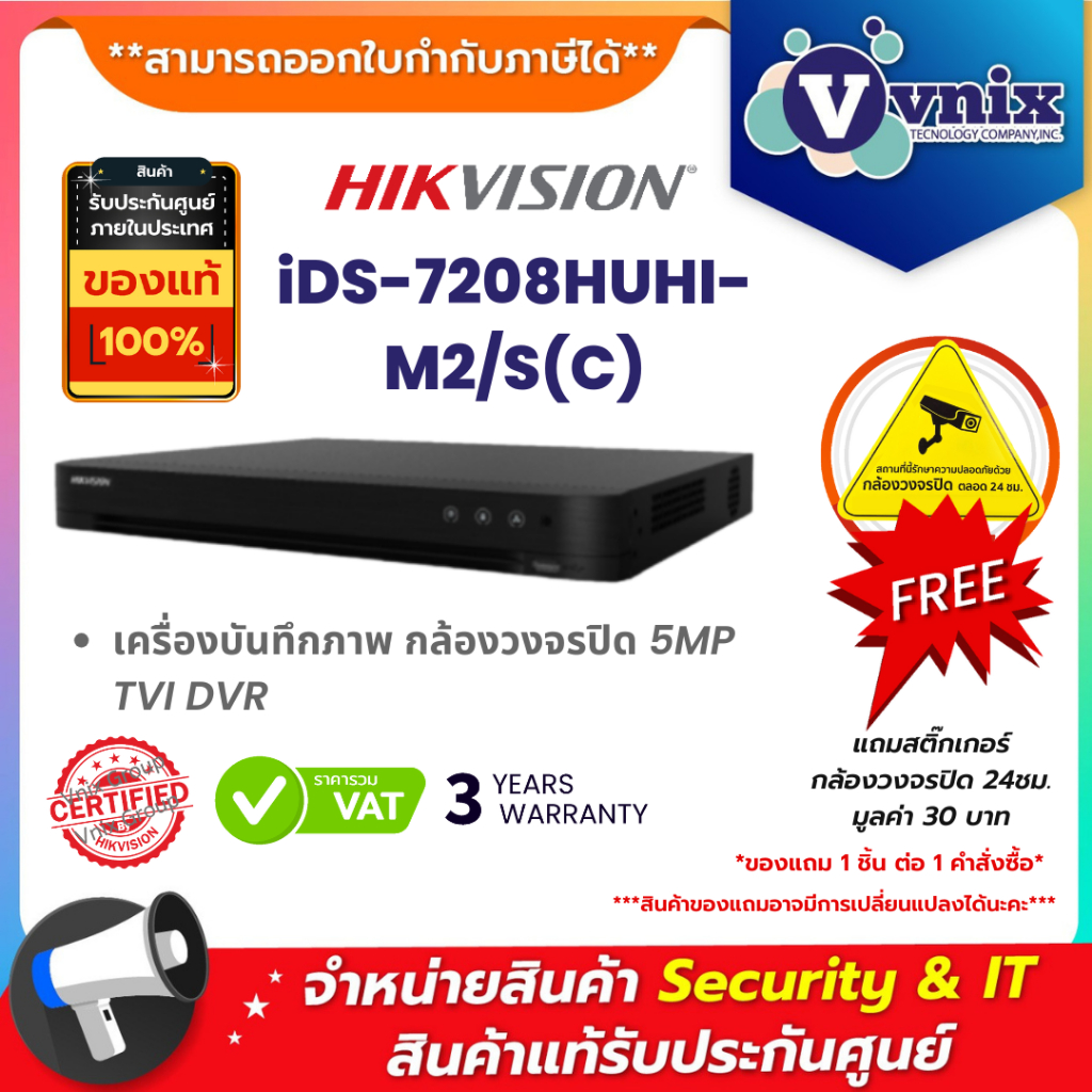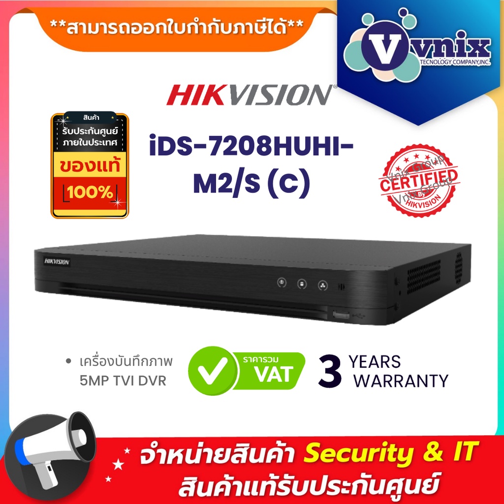 iDS-7208HUHI-M2/S(C) Hikvision เครื่องบันทึกภาพ กล้องวงจรปิด 5MP TVI DVR By Vnix Group