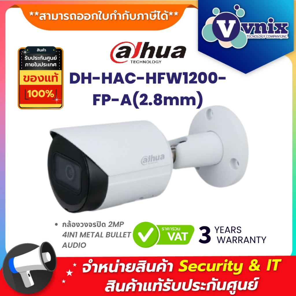 HAC-HFW1200-FP-A(2.8mm) Dahua กล้องวงจรปิด 2MP 4IN1 METAL BULLET AUDIO By Vnix Group