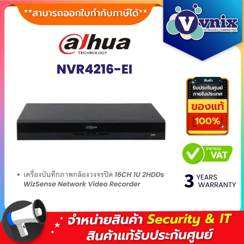 Dahua NVR4216-EI เครื่องบันทึกภาพกล้องวงจรปิด 16CH 1U 2HDDs WizSense Network Video Recorder By Vnix Group