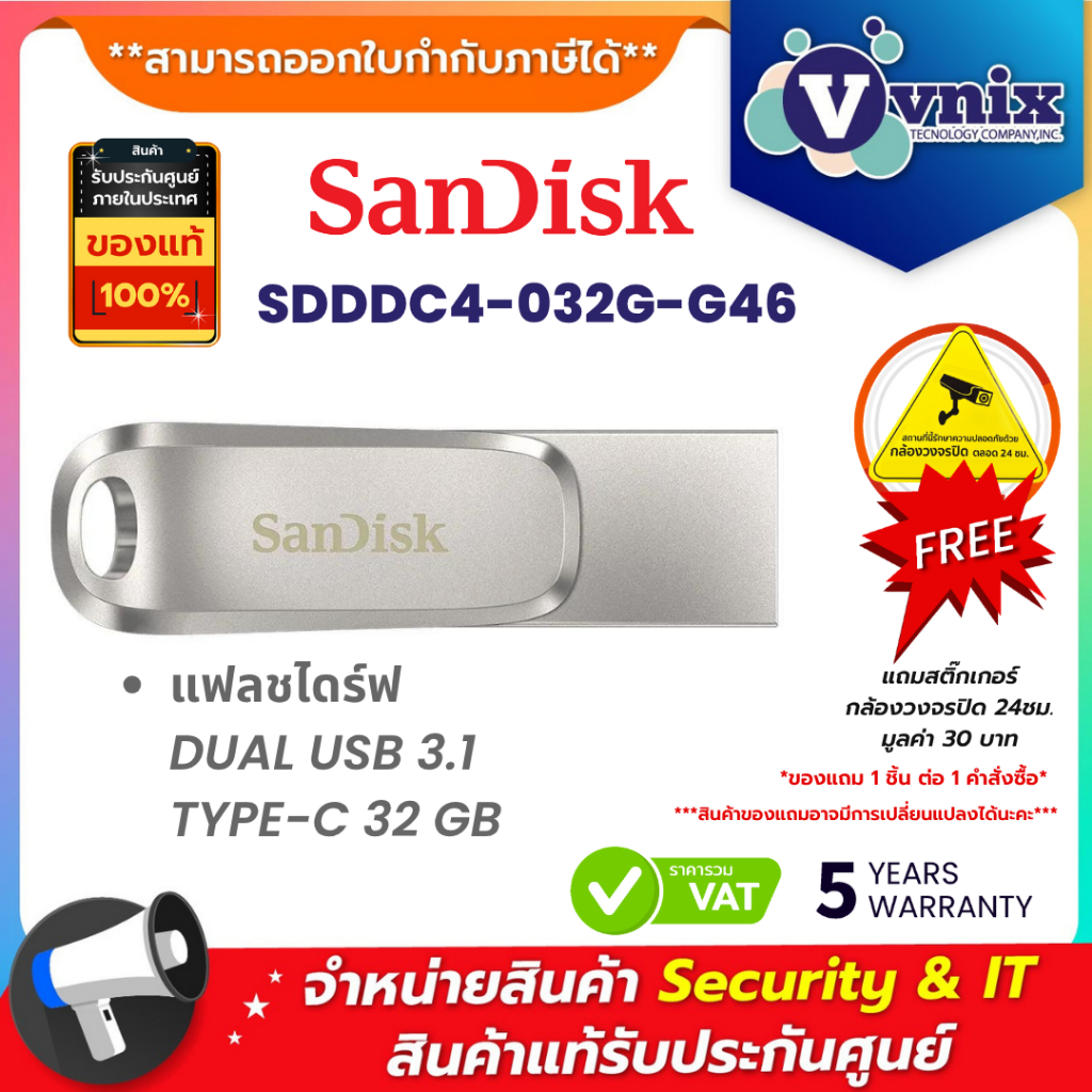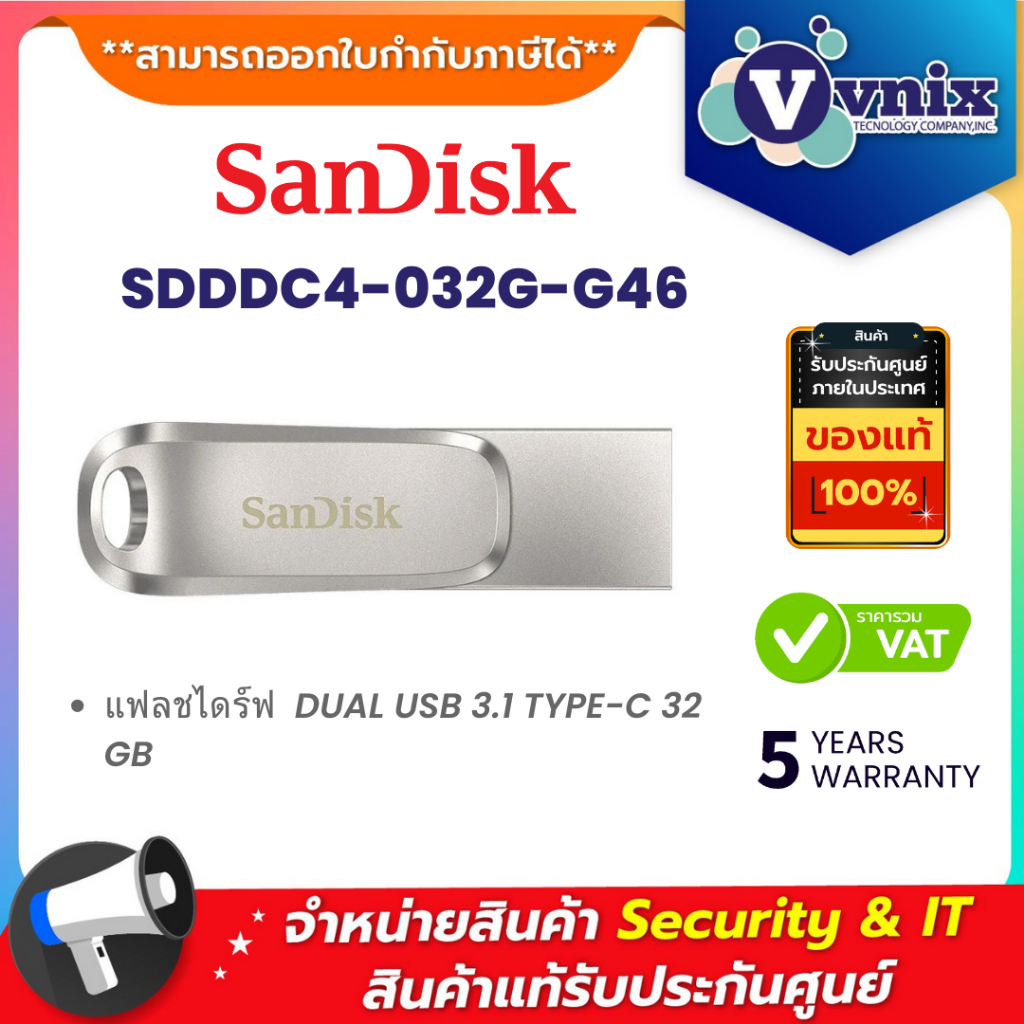 SANDISK (SDDDC4-032G-G46) FLASH DRIVE Ultra Dual Drive Luxe USB Type-C 32GB รั บประกัน 5 ปี By Vnix Group