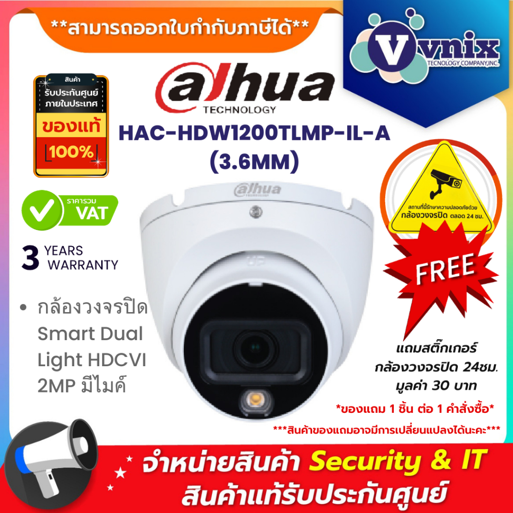 Dahua HAC-HDW1200TLMP-IL-A/HAC-HDW1200TLM-IL-A(3.6MM) กล้องวงจรปิด Smart Dual Light HDCVI 2MP มีไมค์ By Vnix Group