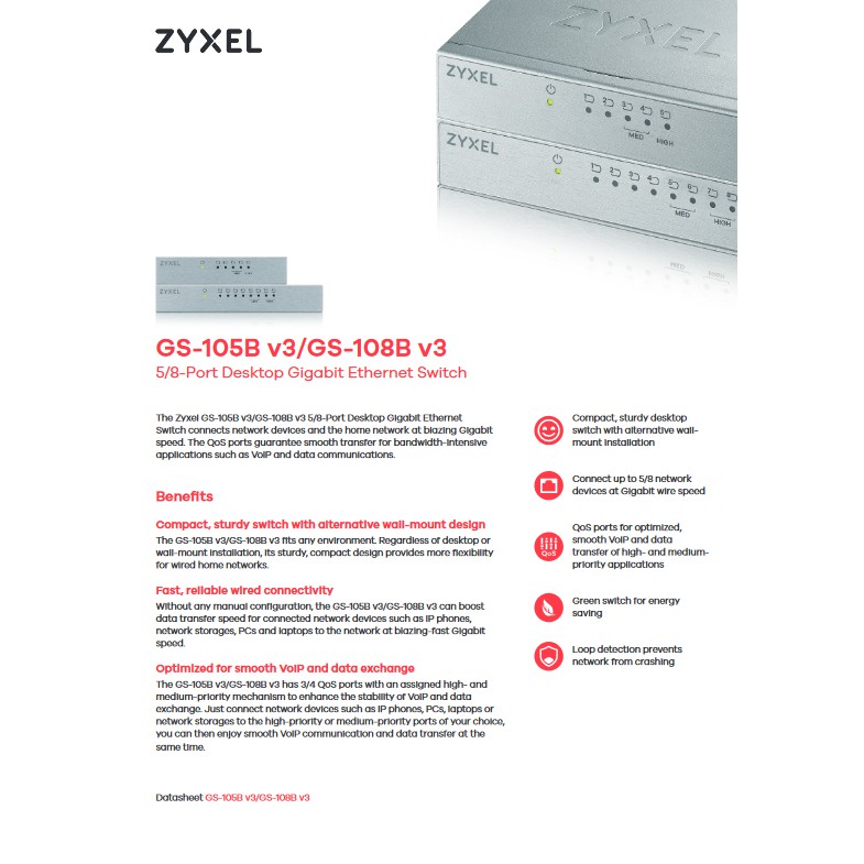 GS-108BV3 ZyXEL Gigabit SWITCH HUB 8 Port By Vnix Group