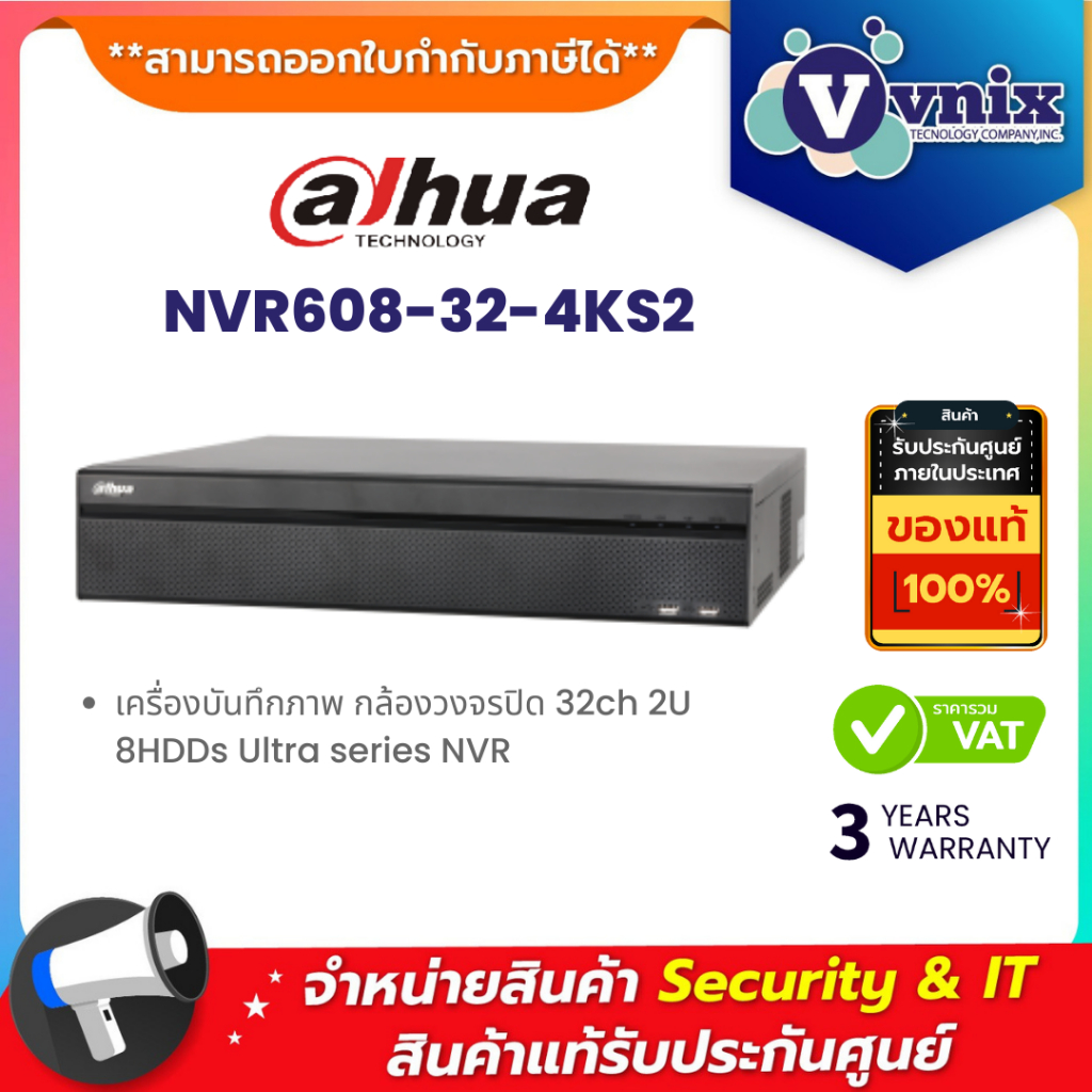 NVR608-32-4KS2 เครื่องบันทึกภาพ กล้องวงจรปิด Dahua 32ch 2U 8HDDs Ultra series NVR by Vnix Group