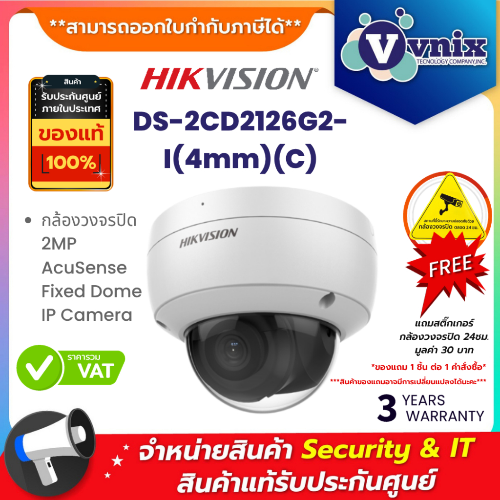 DS-2CD2126G2-I(4mm)(C) กล้องวงจรปิด Hikvision 2MP AcuSense Fixed Dome IP Camera By Vnix Group