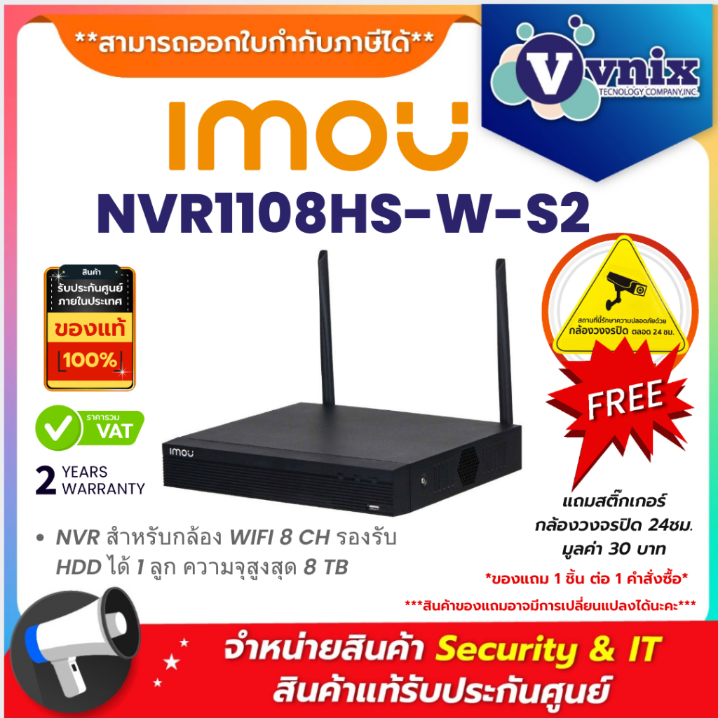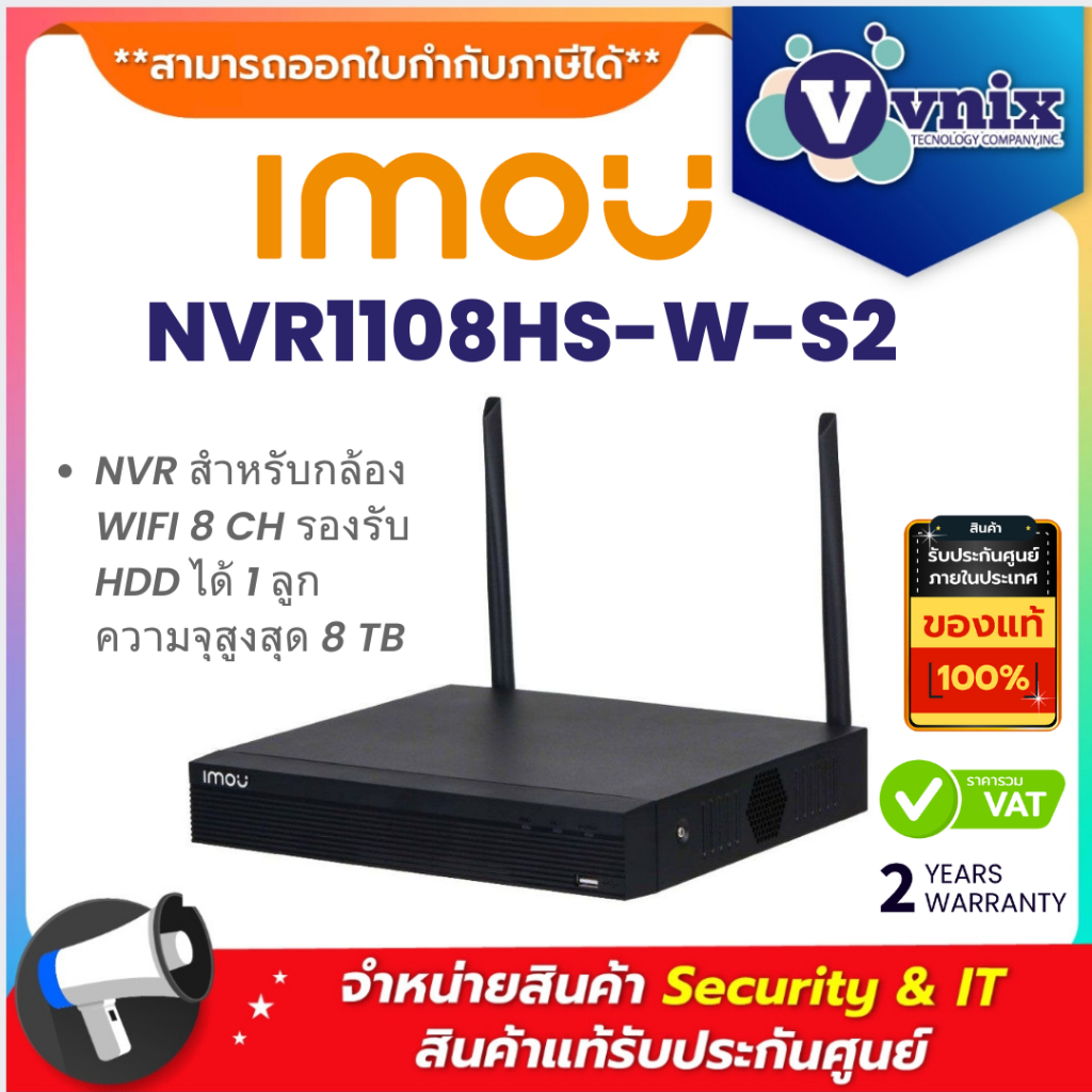NVR1108HS-W-S2 Imou NVR สำหรับกล้อง WIFI 8 CH รองรับ HDD ได้ 1 ลูก ความจุสูงสุด 8 TB By Vnix Group