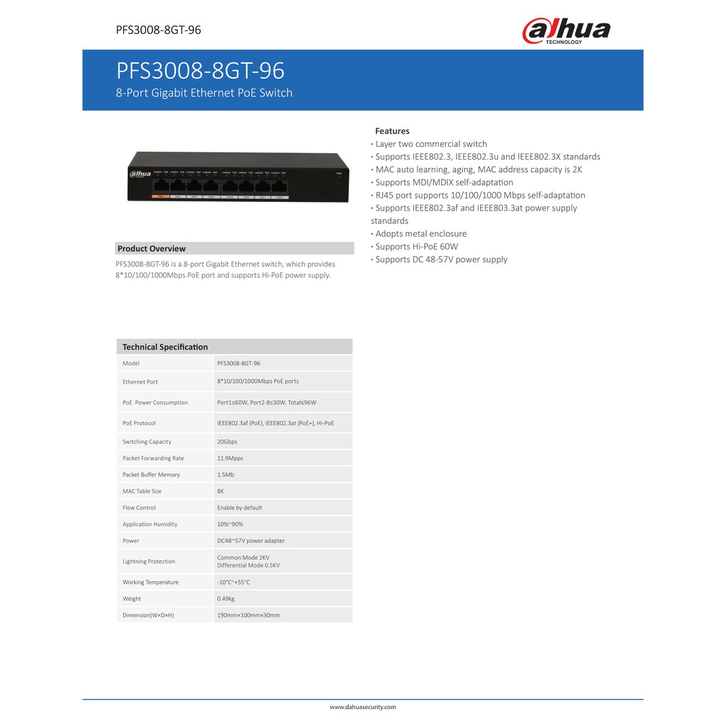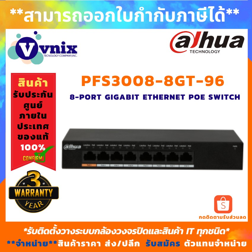 PFS3008-8GT-96 สวิตซ์ Dahua 8-Port Gigabit Ethernet PoE Switch by Vnix Group