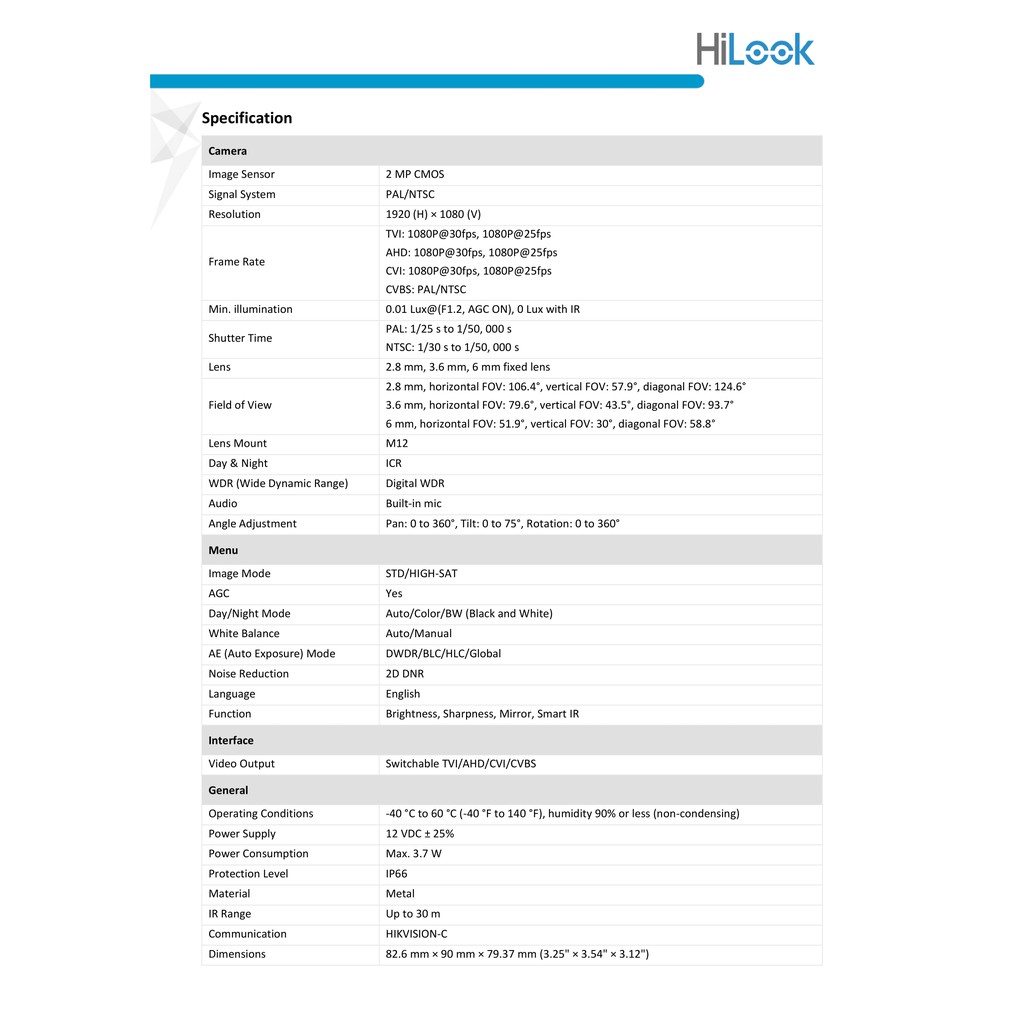 THC-T120-MS(2.8mm) กล้องวงจรปิด Hilook 2 MP Audio Camera By Vnix Group