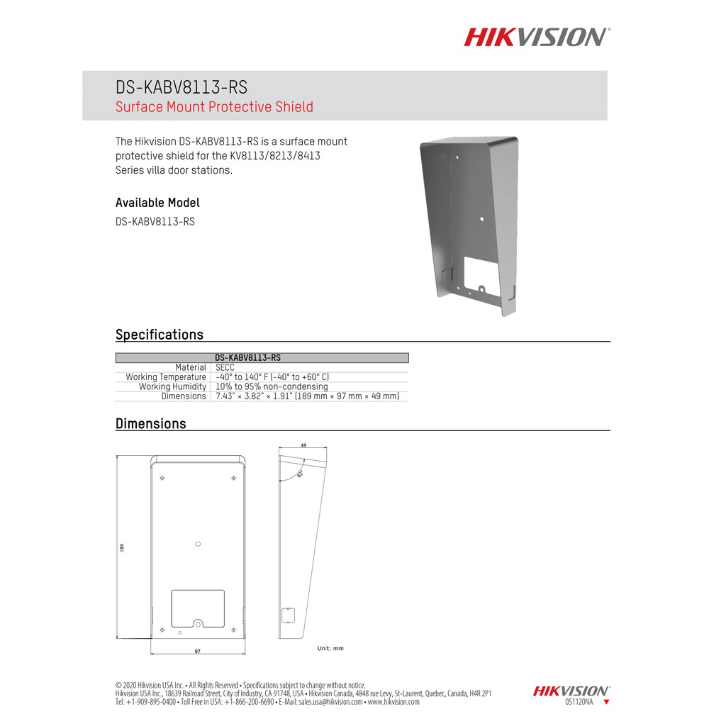 DS-KABV8113-RS ขายึด Hikvision Surface Mount Protective Shield by Vnix Group