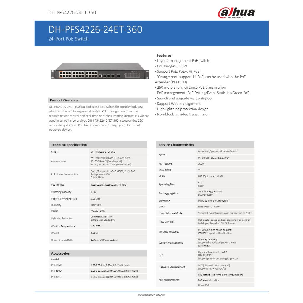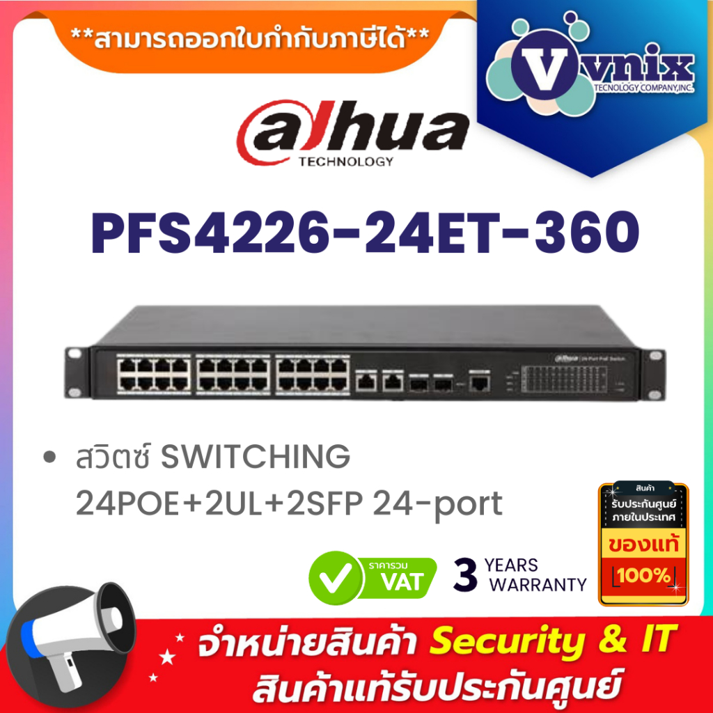 Dahua PFS4226-24ET-360 POE สวิตซ์ SWITCHING 24POE+2UL+2SFP 24-port ประกัน 3 ปี by Vnix Group