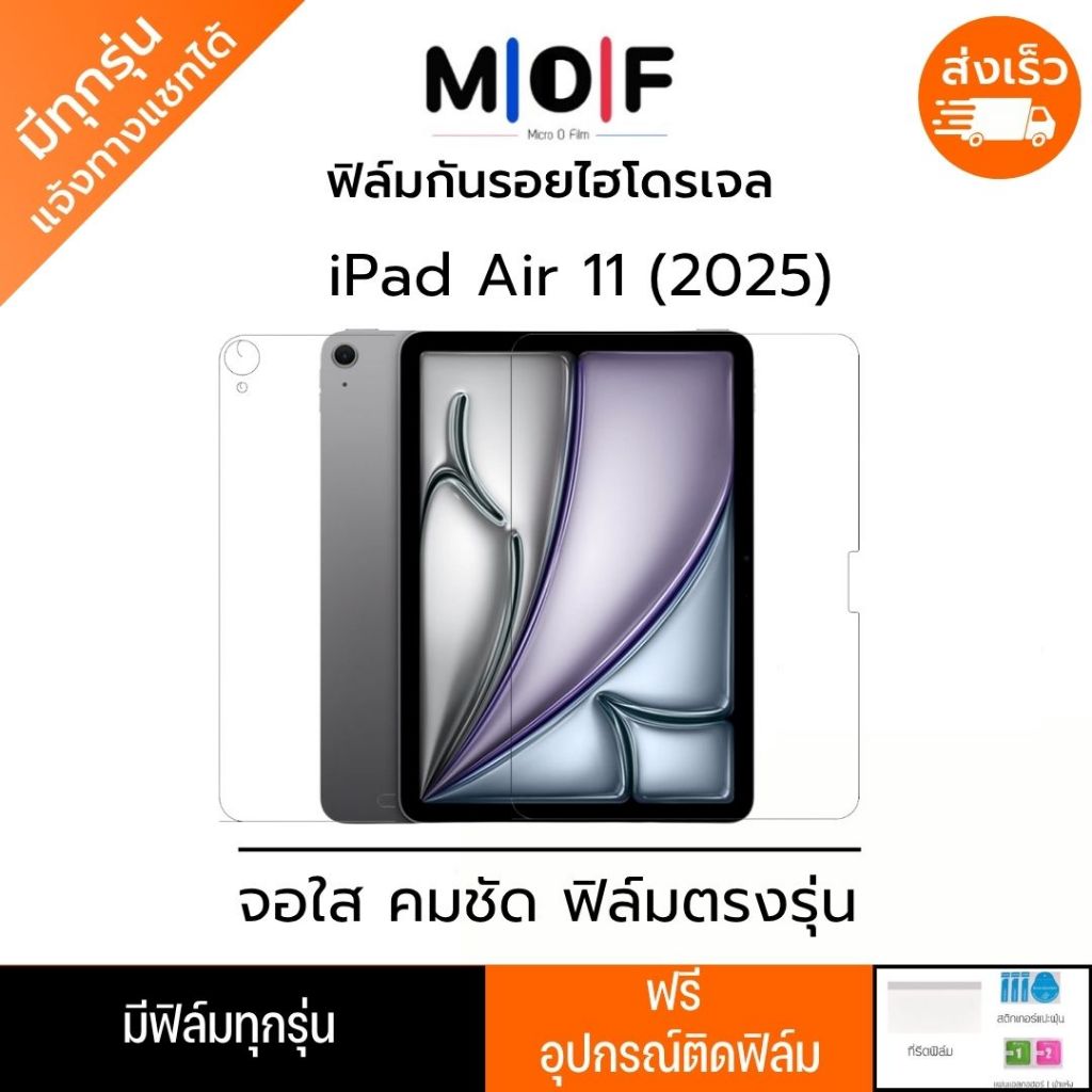 ฟิล์มกันรอยไฮโดรเจล iPad Air รุ่น 11 นิ้ว 2025 แถมอุปกรณ์ติดฟิล์ม มีวิดิโอสอนติด ฟิล์มiPad ฟิล์มไอแพด