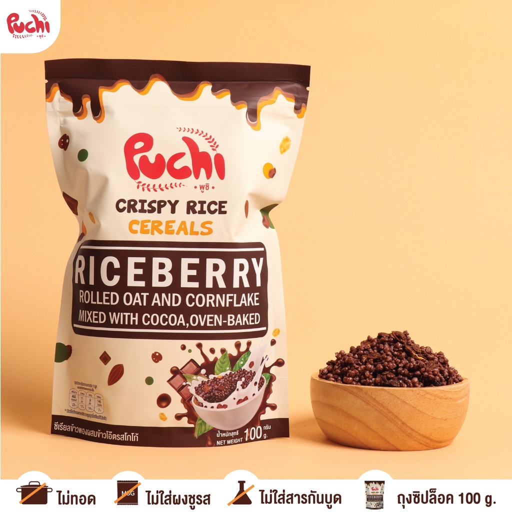 Puchithailand ซีเรียล รสโกโก้ จำนวน 1 ถุง บรรจุ 100 กรัม ในถุงซิปล็อค (ทำมาจากข้าวไรซ์เบอร์รี่)