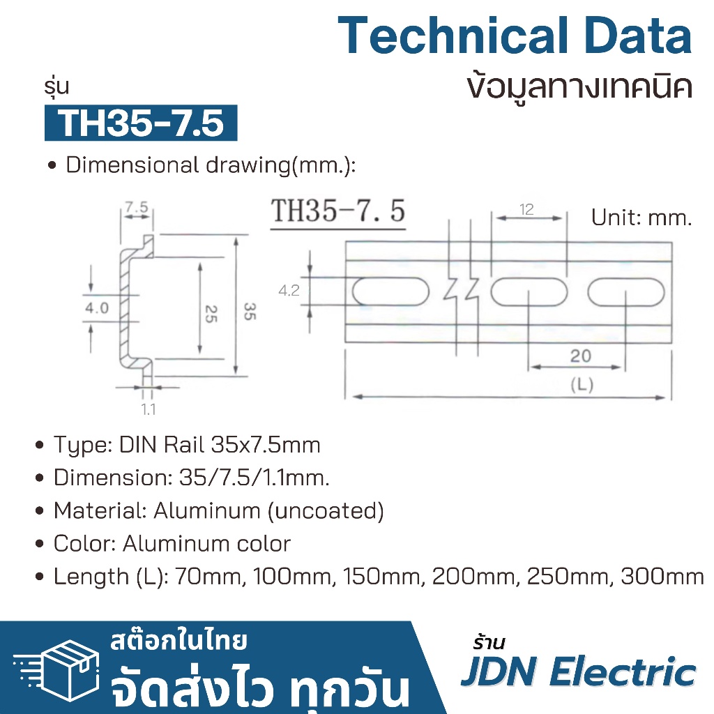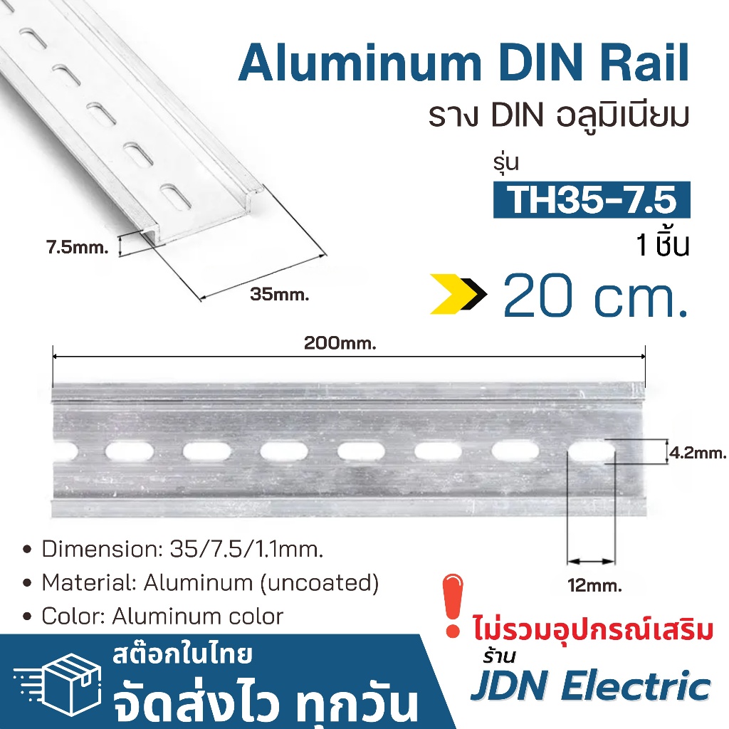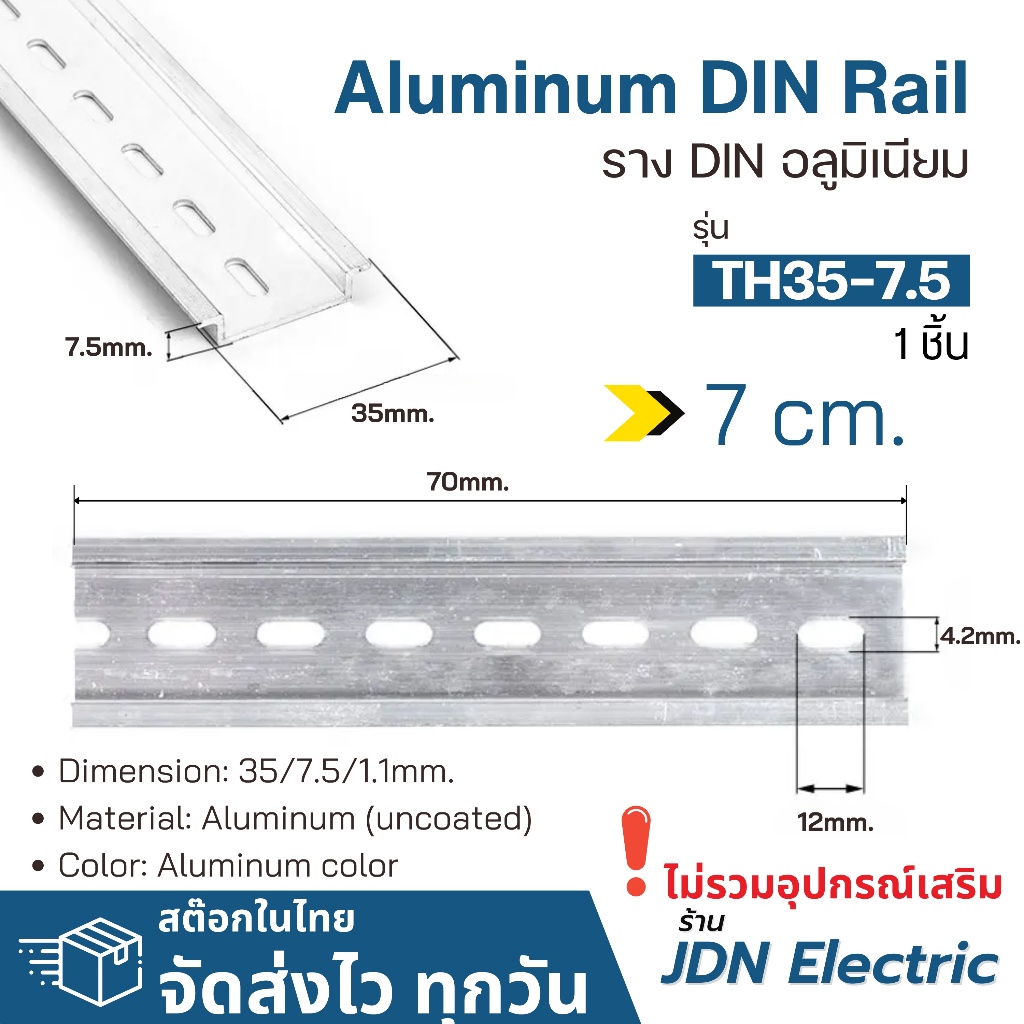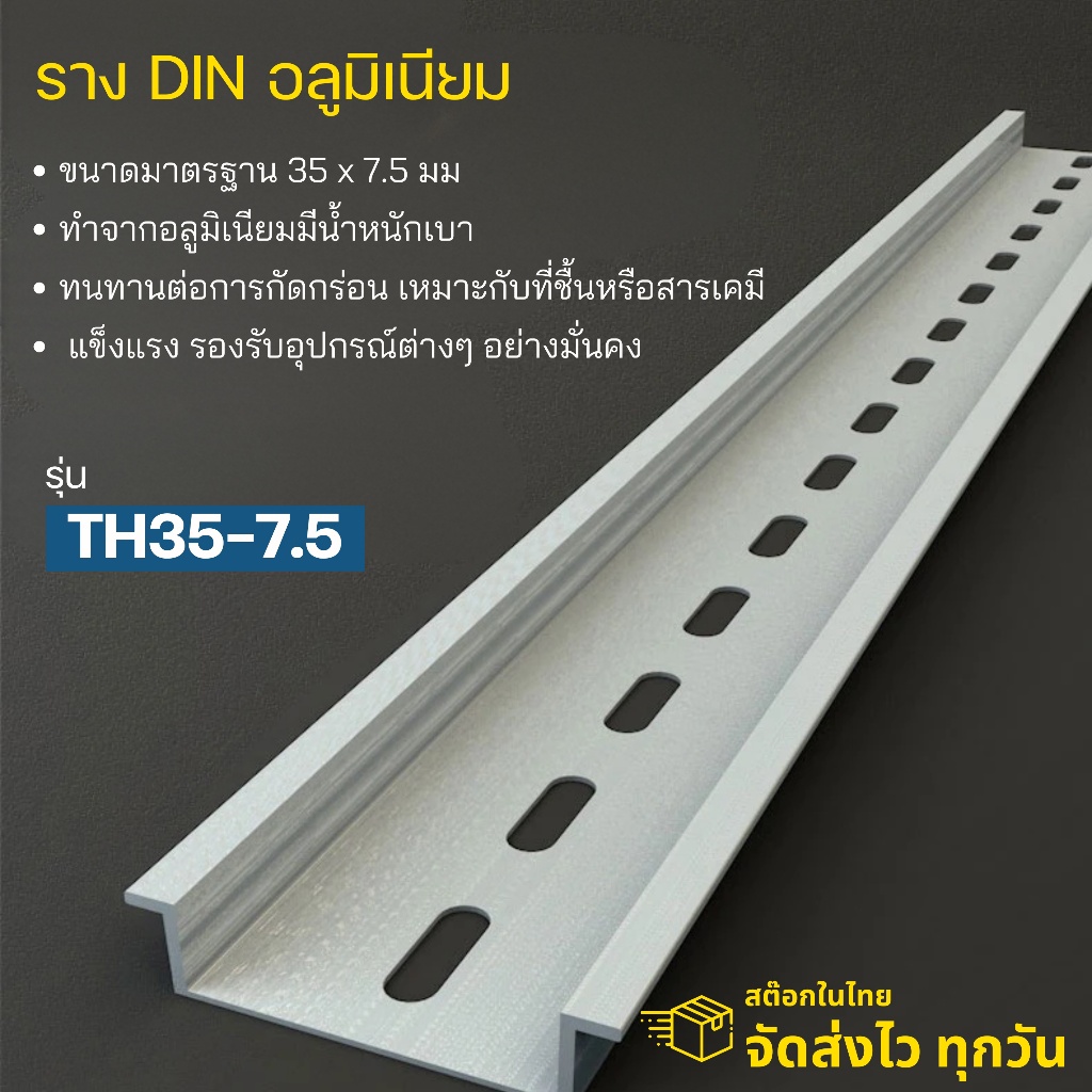 35x7.5mm Aluminum DIN Rail | ราง DIN อลูมิเนียม | รางปีกนก | รางรีเลย์ | สต๊อกไทย ส่งไว ทุกวัน