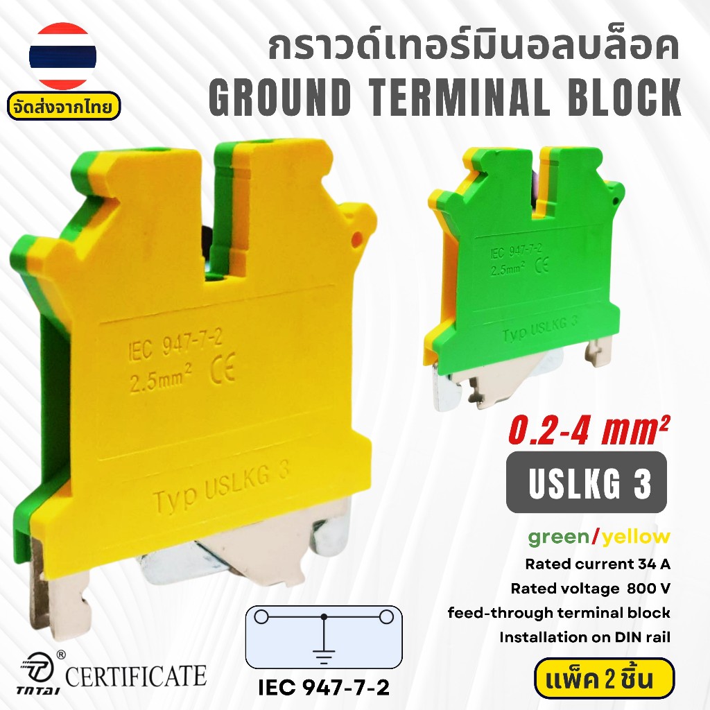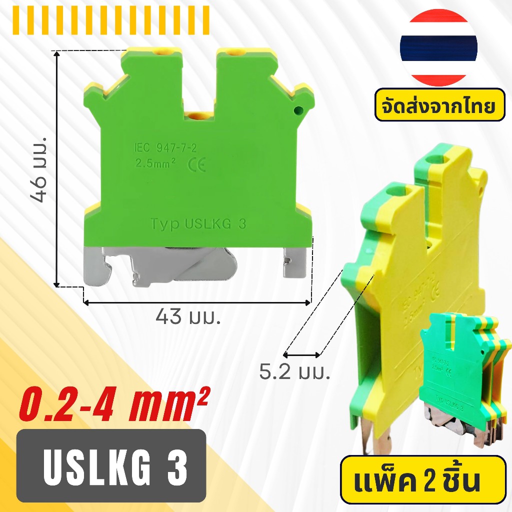 (แพ็ค 2 ชิ้น) USLKG3 Ground Terminal Block เทอร์มินอลกราวด์ สาย 0.2 - 4 Sq.mm.