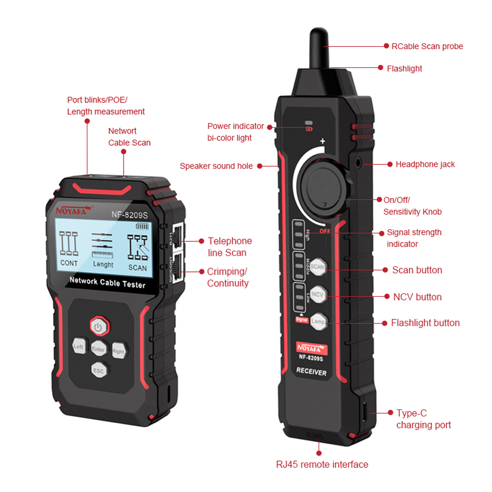 Noyafa NF-8209S อุปกรณ์ทดสอบสายเคเบิลเครือข่าย หน้าจอ LCD