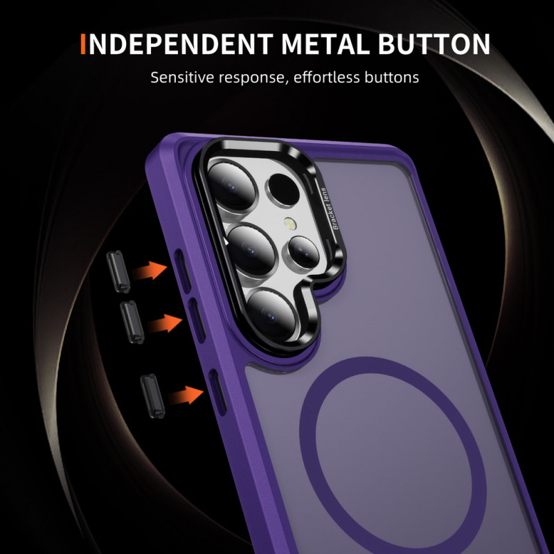 โลหะที่มองไม่เห็นเลนส์วงเล็บ Matte โปร่งแสงแม่เหล็กสําหรับ Samsung Galaxy S25 Ultra Plus S24 S23 Ultra Plus ไร้สายชาร์จ Hard กันกระแทกฝาครอบป้องกัน