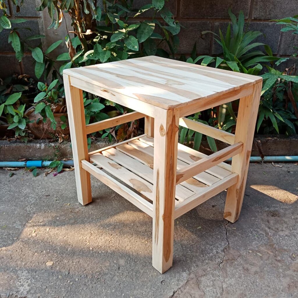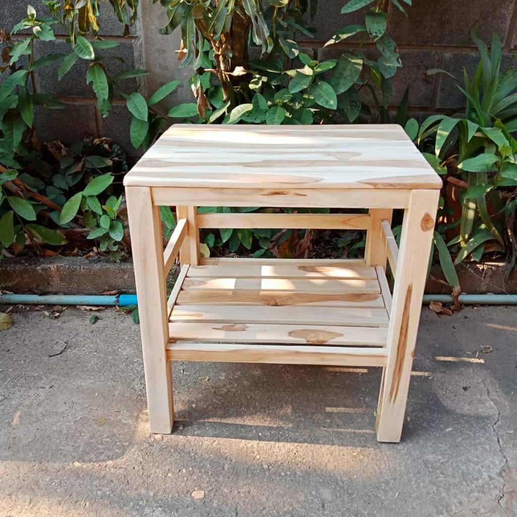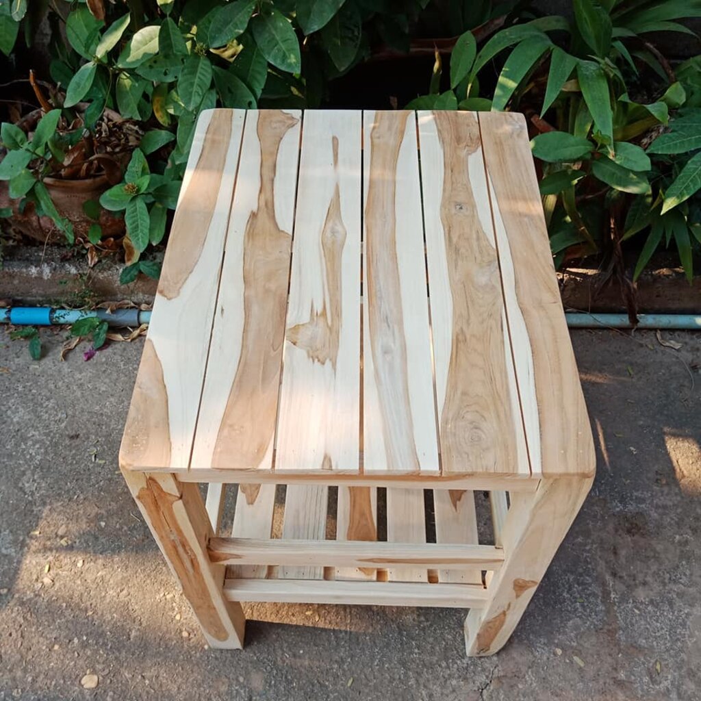 โต๊ะไม้สักเล็ก งานไม้ดิบไม่ทำสี ขนาด 39x49x54cm