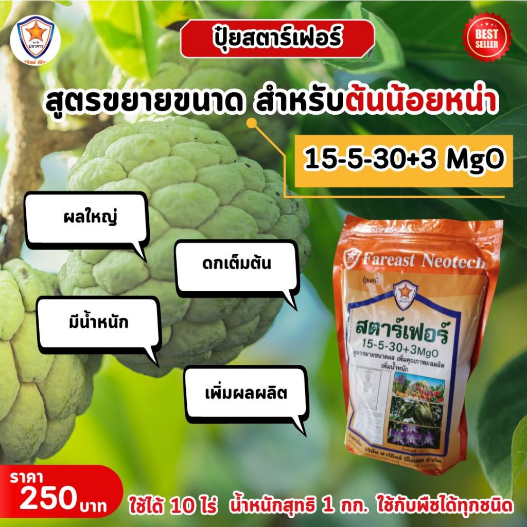 เร่งให้ต้นน้อยหน่า ออกดอกสวย และเร่งการแตกราก ด้วยปุ๋ยสตาร์เฟอร์ สูตร 10-40-10+3 MgO