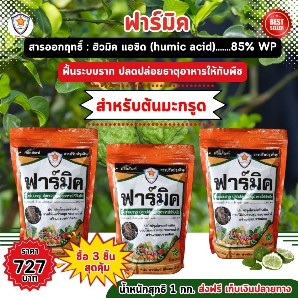 ฮิวมิค แอซิด สารปรับปรุงดิน ฟาร์มิค ฟื้นระบบราก ปลดปล่อยธาตุอาหาร เพิ่มผลผลิต สำหรับต้นมะกรูด