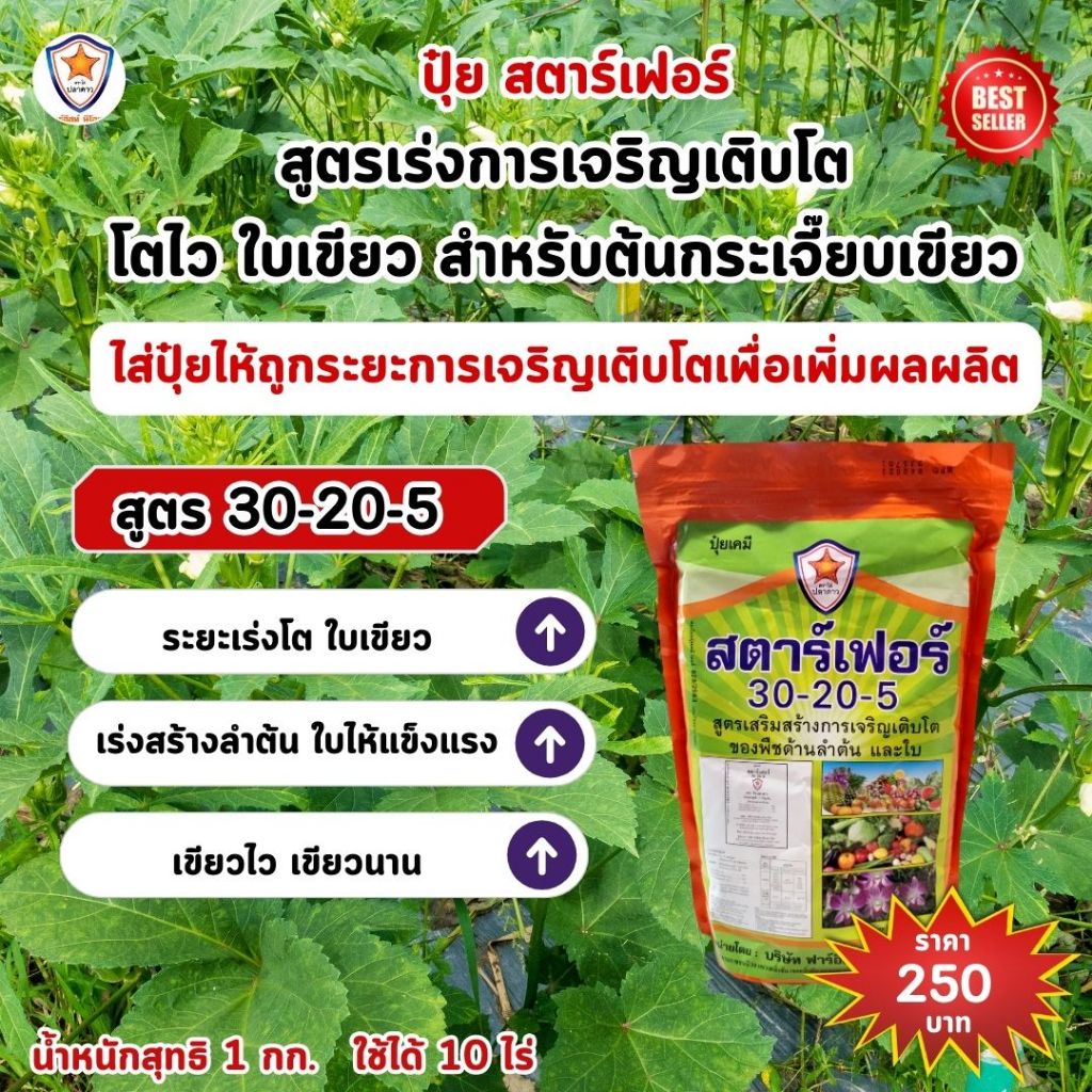 ปุ๋ย สตาร์เฟอร์ 3 สูตร ครบทุกความต้องการ ต้นกระเจี๊ยบเขียว ช่วยให้ต้นกระเจี๊ยบเขียวเจริญเติบโตได้ดี ให้ผลผลิตที่มีคุณภาพ
