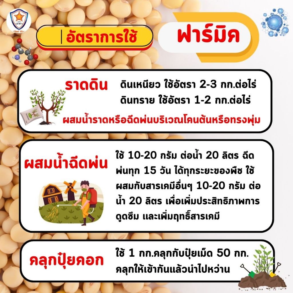 ฟาร์มิค ฮิวมิค แอซิด สารปรับปรุงดิน ฟื้นระบบราก ปลดปล่อยธาตุอาหาร เพิ่มผลผลิต สำหรับต้นถั่วเหลือง