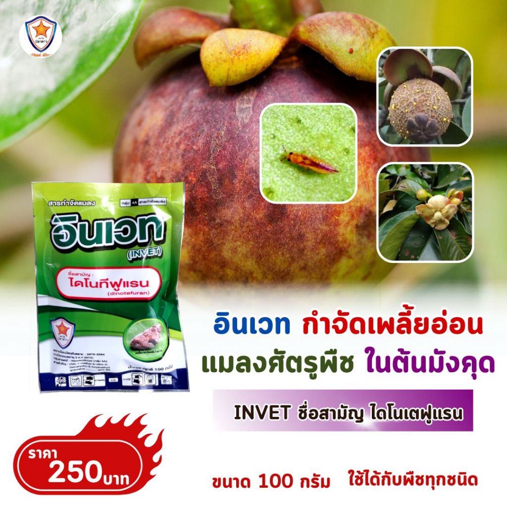 INVET ไดโนเตฟูแรน ฉีดพ่นป้องกันและกำจัดเพลี้ยไฟ ศัตรูพืชสำหรับต้นมังคุด และ เร่งฟื้นฟูด้วย ปุ๋ยสตาร์เฟอร์ 30-20-5