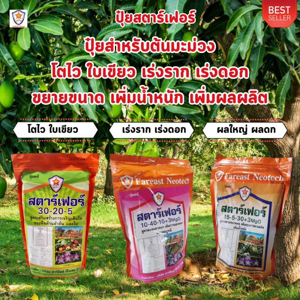 ปุ๋ยสตาร์เฟอร์ สูตร 15-5-30+3 MgO: เคล็ดลับสำคัญสำหรับการเพิ่มน้ำหนักและคุณภาพของผลผลิตมะม่วง