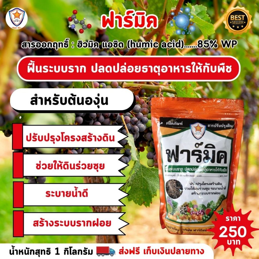 สารออกฤทธิ์ ฮิวมิค แอซิด ฟาร์มิค ฟื้นฟูระบบราก ปลดปล่อยธาตุอาหาร เพิ่มผลผลิต สำหรับต้นองุ่น ให้แข็งแรง