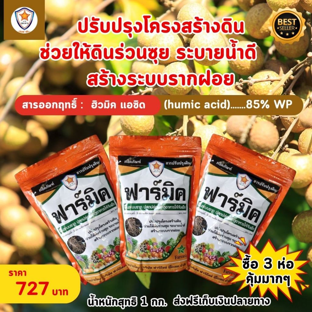 ฮิวมิค แอซิด ฟาร์มิค ฟื้นระบบราก ปลดปล่อยธาตุอาหารไห้กับพืช ปรับปรุงโครงสร้างดิน ระบายน้ำดีสำหรับตันลำไย