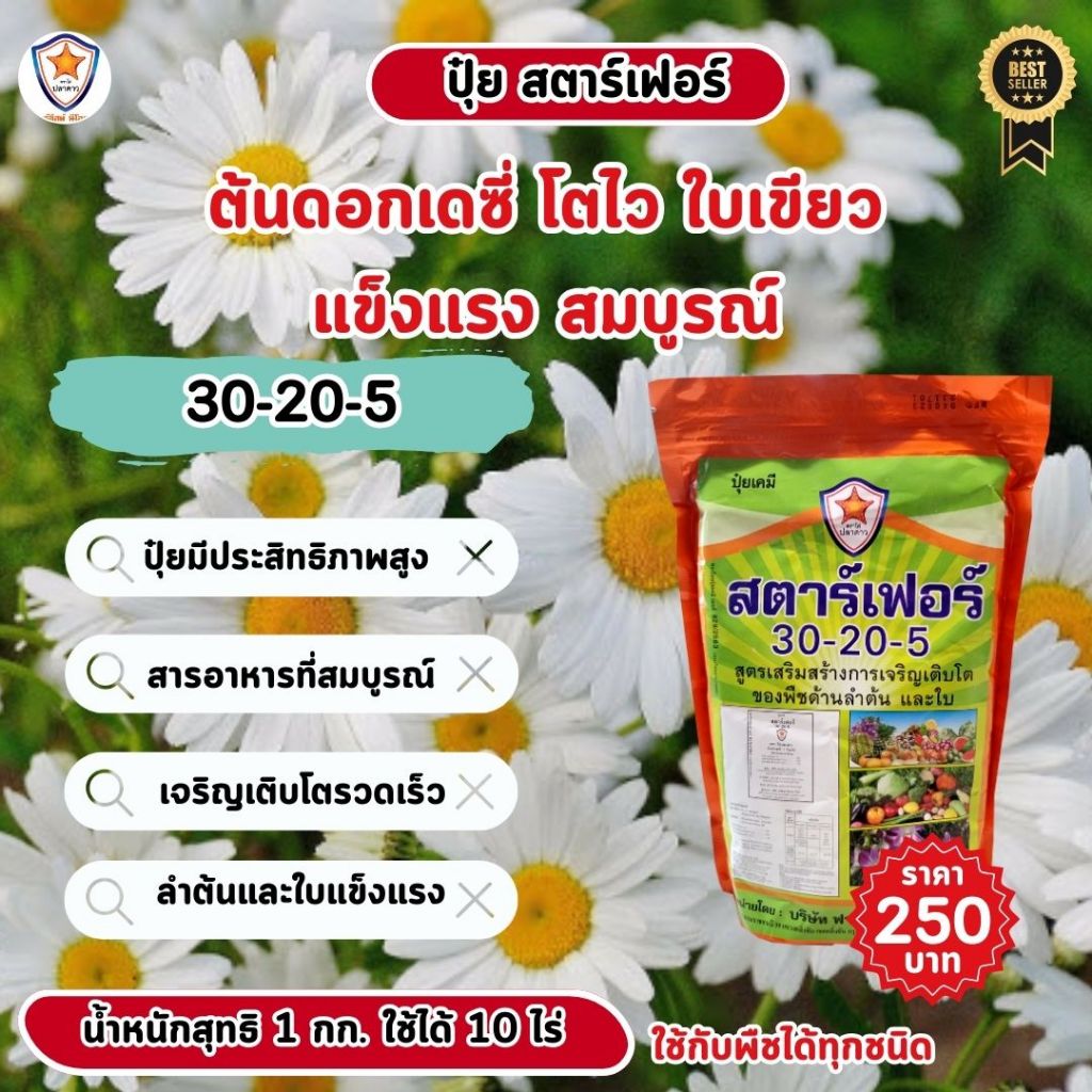 เพิ่มความงดงามให้ต้นดอกเดซี่ด้วยปุ๋ยสตาร์เฟอร์ สูตร 10-40-10 สำหรับเร่งการออกดอก และเร่งราก ต้นดอกเดซี่
