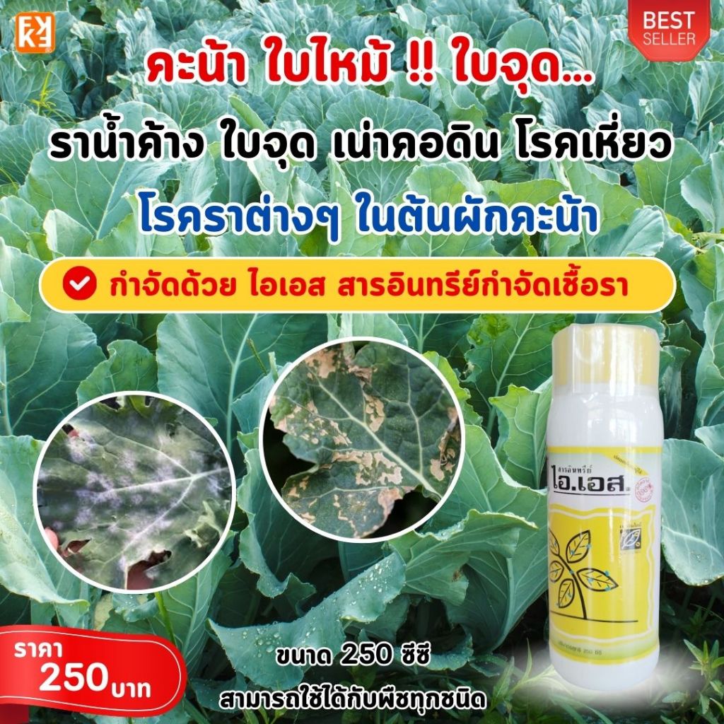 คะน้า ใบจุด ใบไหม้ ราน้ำค้าง เน่าคอดิน โรคเหี่ยว โรคราต่างๆ ป้องกันกำจัดด้วย ไอเอส และเร่งฟื้นฟู ด้วยปุ๋ย FK-T