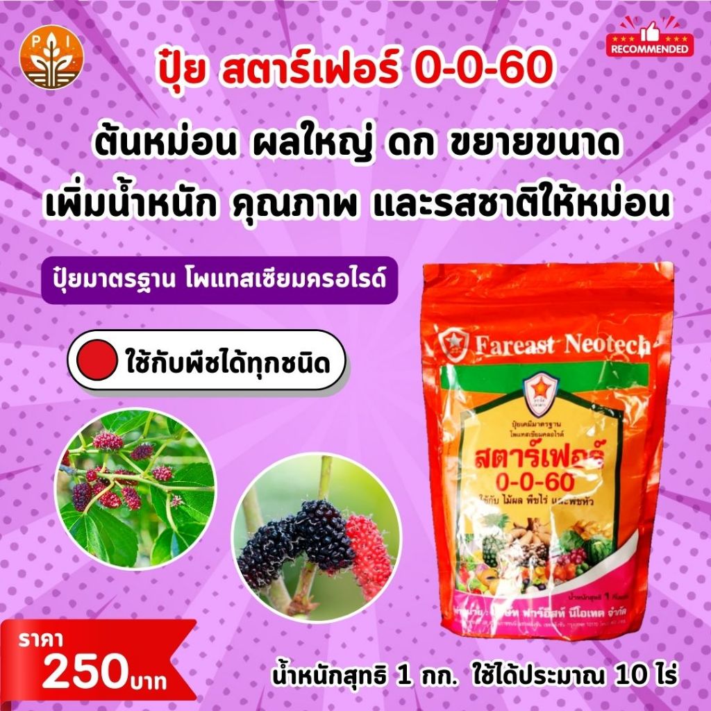 ต้นหม่อน ผลใหญ่ ด้วย ปุ๋ย สตาร์เฟอร์ 0-0-60 โพแทสเซี่ยม สูตรเร่งผล เพิ่มผลผลิต ขยายขนาด เพิ่มน้ำหนัก และคุณภาพ