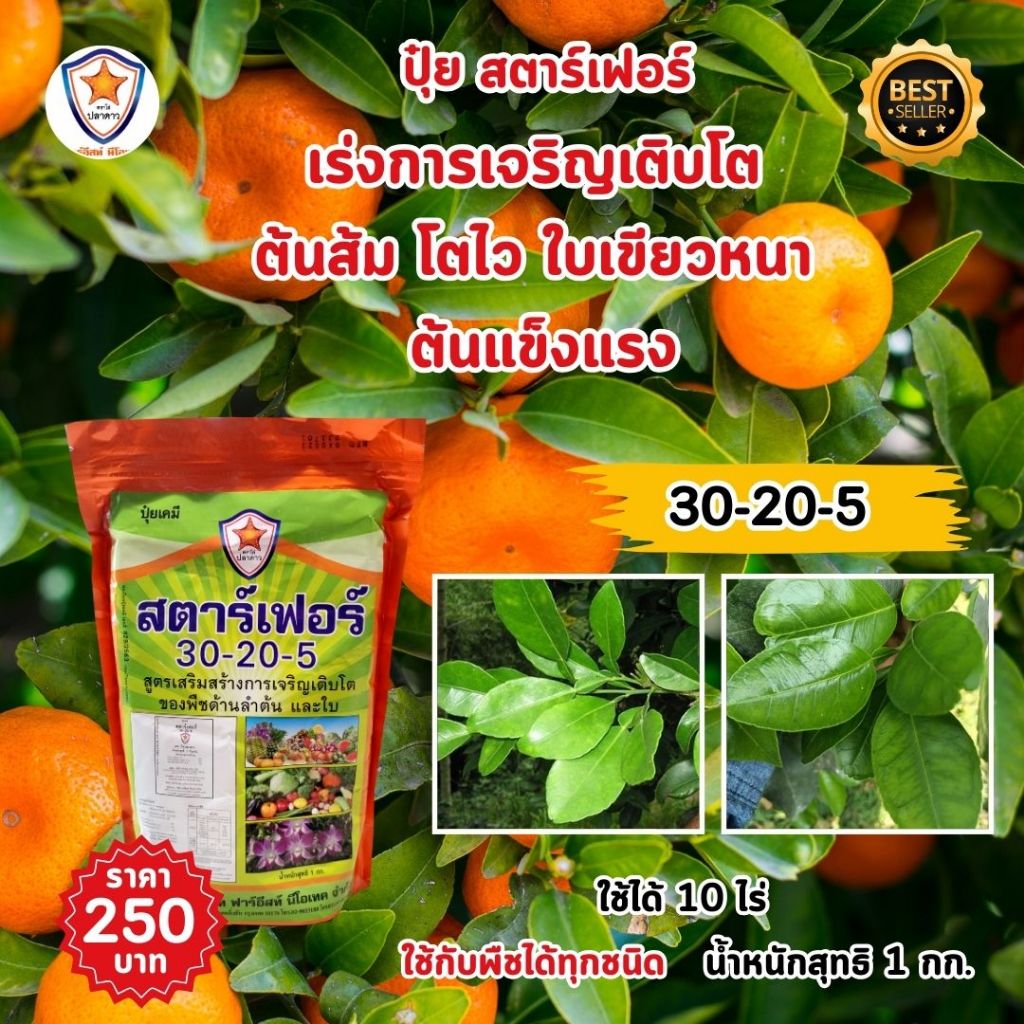 เสริมคุณภาพและปริมาณผลผลิตด้วยปุ๋ยสตาร์เฟอร์ สูตร 15-5-30+3 MgO เพิ่มน้ำหนักและคุณภาพของผลผลิตส้ม