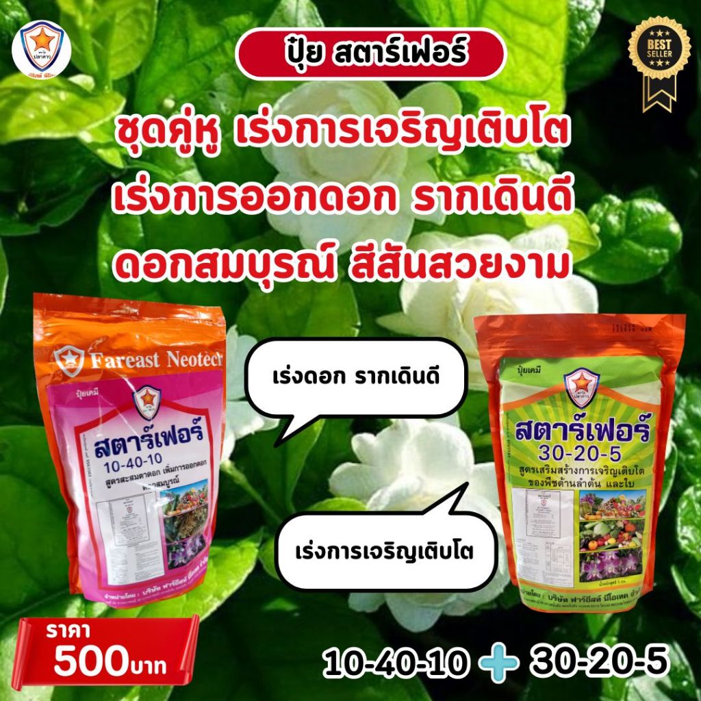 ปุ๋ยสตาร์เฟอร์ สูตร 10-40-10: บำรุงดอกมะลิให้สมบูรณ์และสวยงาม เร่งการออกดอก และการแตกราก ไห้แข็งแรง สมบูรณ์