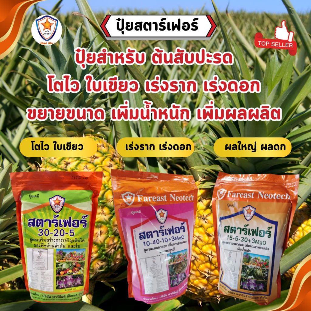 ปุ๋ยสตาร์เฟอร์ ปุ๋ย 3 สูตร ครบทุกช่วงอายุสับปะรด โตไว ใบเขียว เร่งราก เร่งดอก ผลใหญ่ เพิ่มน้ำหนัก เพิ่มผลผลิต