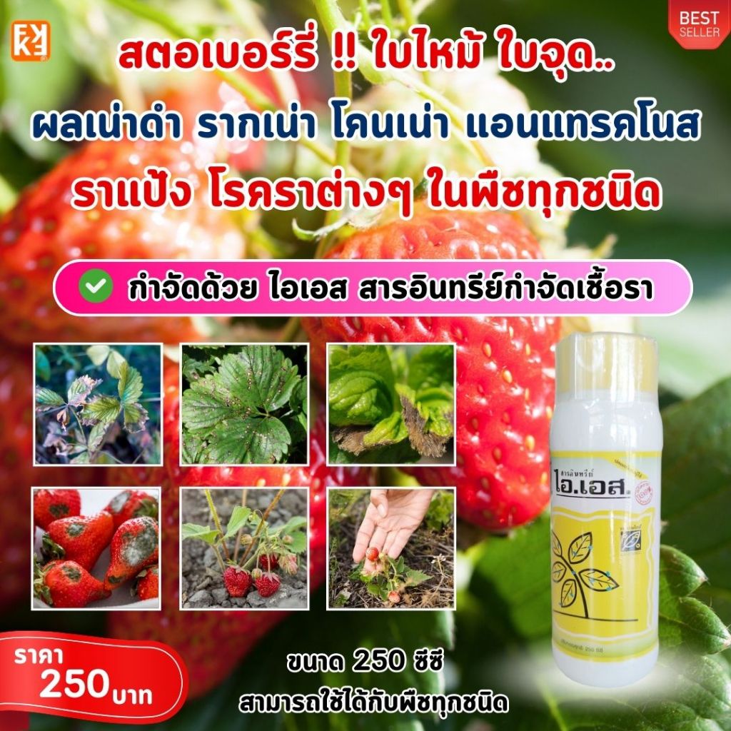 สตอเบอร์รี่ ใบไหม้ ใบจุด รากเน่า ผลเน่า แอนแทรคโนโรคราต่างๆ ในต้นกระเพรา ป้องกันกำจัดด้วย ไอเอส และเร่งฟื้นฟู ด้วย FK-T
