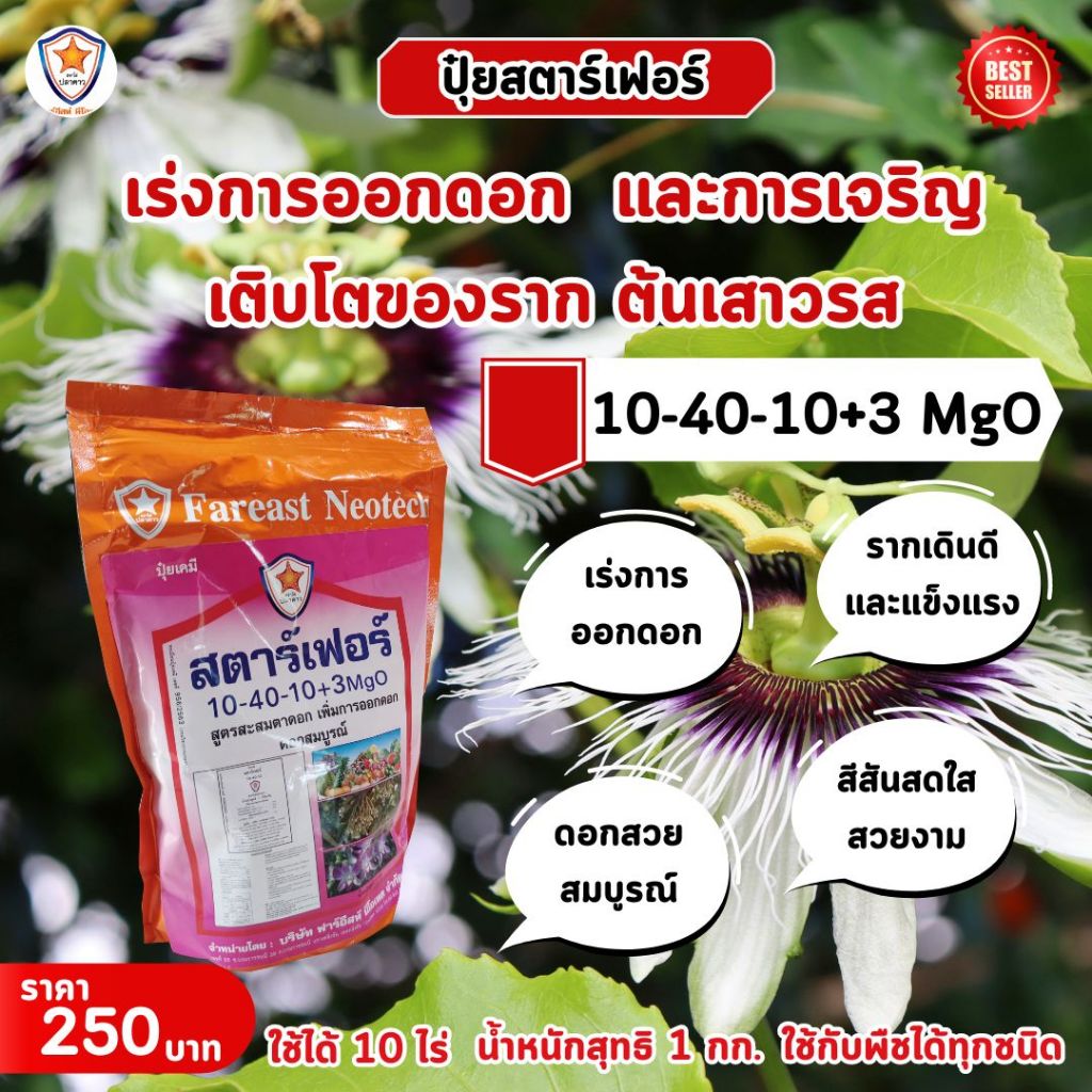 เร่งการออกดอกและเร่งราก เสาวรส ด้วยปุ๋ยสตาร์เฟอร์ สูตร 10-40-10+3 MgO
