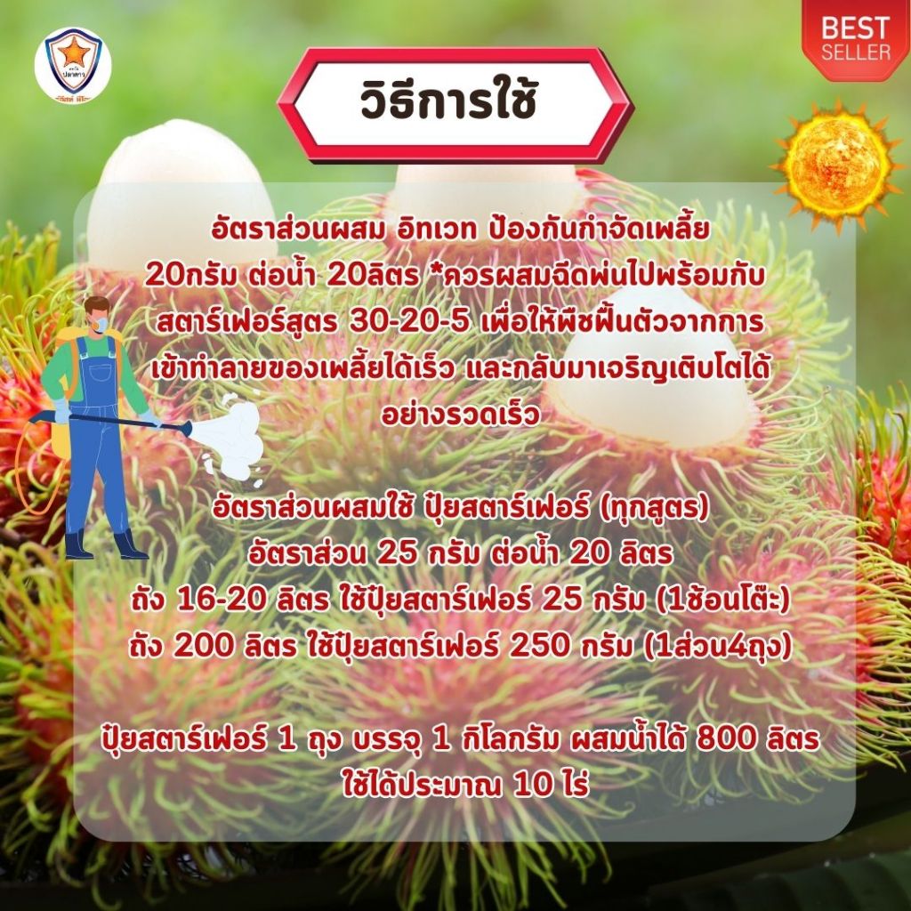 INVET ฉีดพ่นป้องกันและกำจัดเพลี้ยแป้ง ศัตรูพืชสำหรับต้นเงาะ และเร่งฟื้นฟู ด้วย ปุ๋ยสตาร์เฟอร์ 30-20-5
