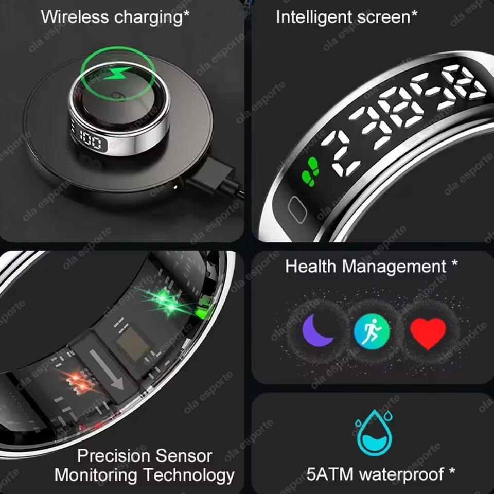 2025 จอแสดงผลหน้าจอแหวนสมาร์ทพร้อมชาร์จไร้สายสุขภาพ Monitor Smartring กีฬาฟิตเนส Tracker IP68 5ATM แหวนกันน้ํา