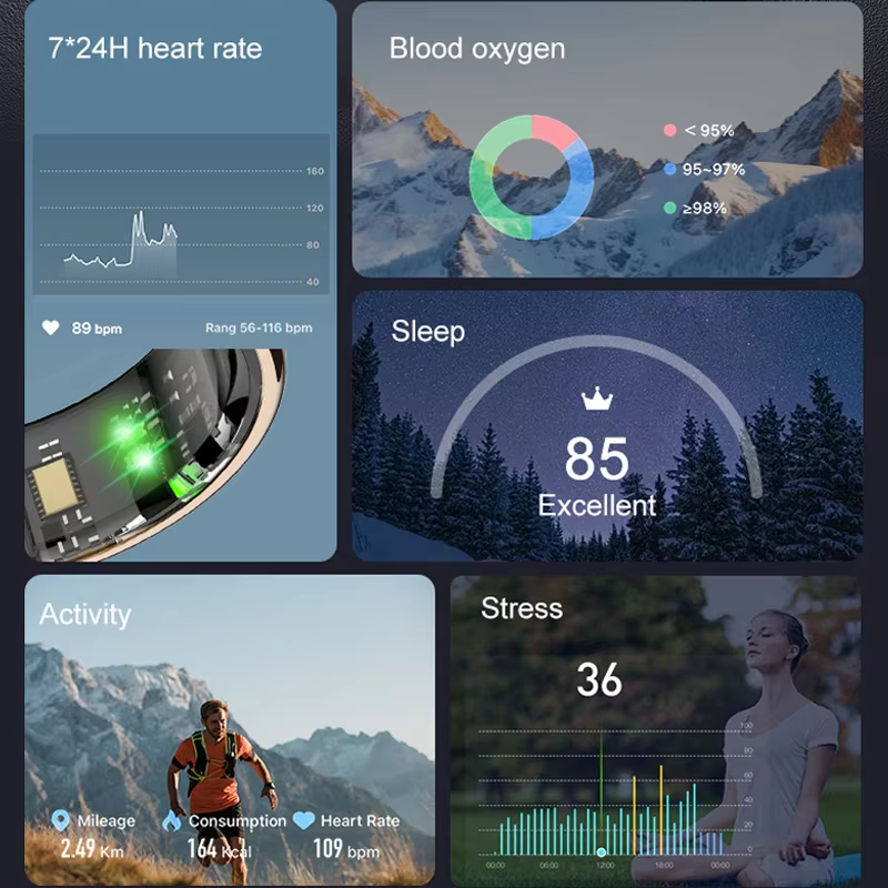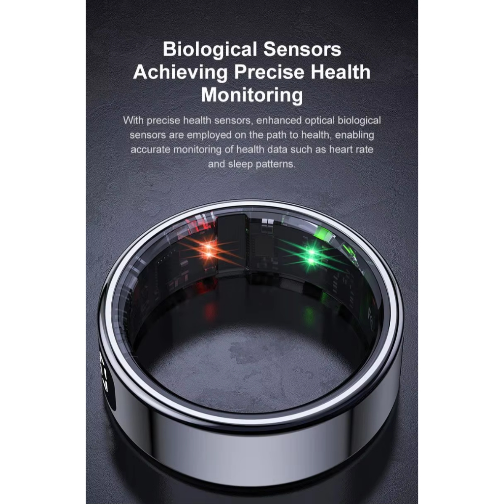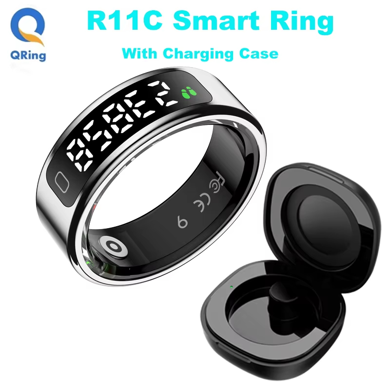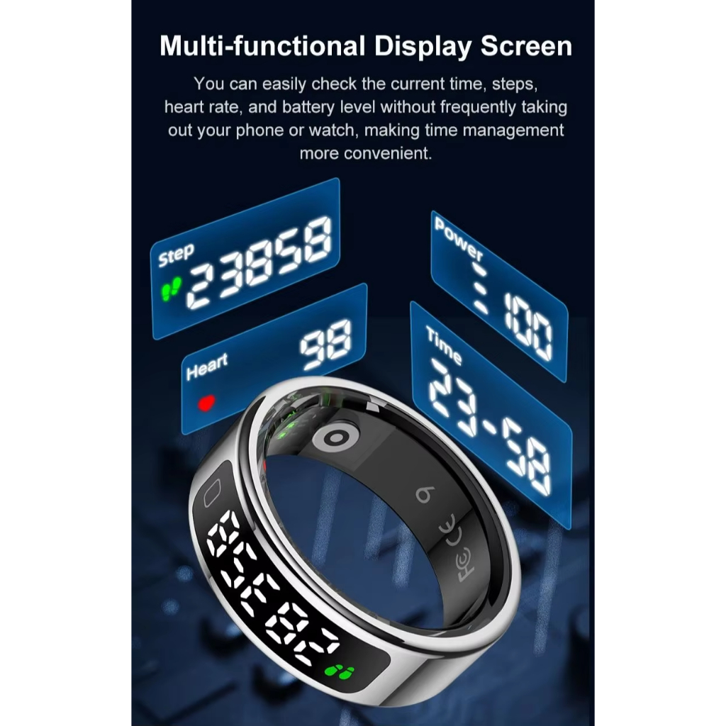 แหวนสมาร์ทฟิตเนสติดตามแหวนที่มีอัตราการเต้นหัวใจออกซิเจนในเลือดการตรวจสอบการนอนหลับการตรวจสอบสุขภาพที่มีหน้าจอแสดง