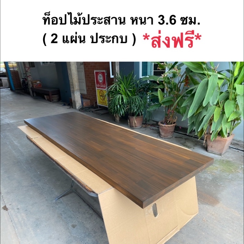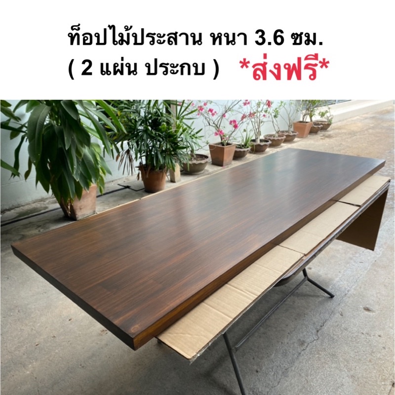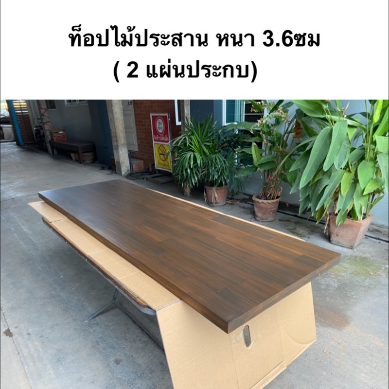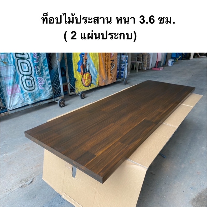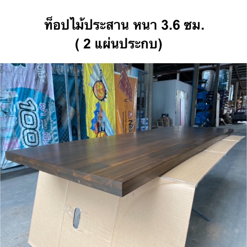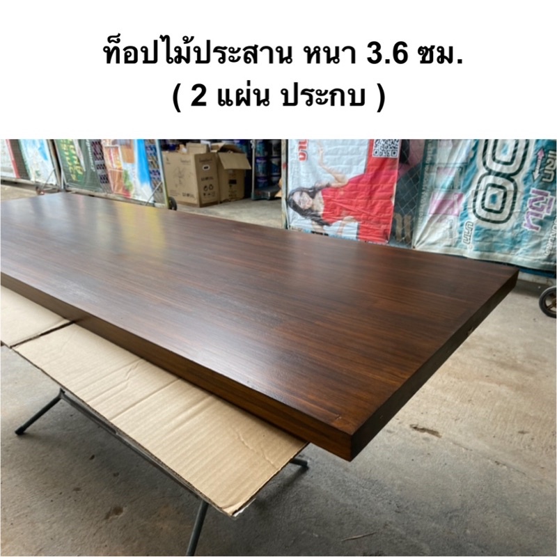 ท็อปโต๊ะ หน้าโต๊ะ แผ่นไม้ประสาน หนา 3.6 ซม.ไม้เอเชี่ยนวอลนัท ประกบกัน 2 แผ่นใช้เดือยยึดเพิ่มความหนาและความแข็งแรง