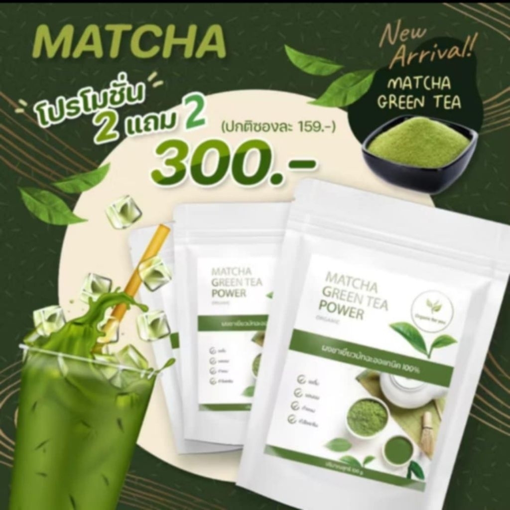 ผงชาเขียวมัทฉะ 4 ซอง แท้ 100% โปร ชื้อ 2 แถม 2 เพียง 300 บ.🎗 ขนาด 100 กรัม/ซอง