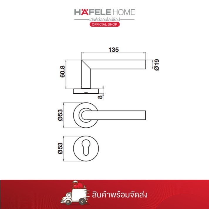 HAFELE ชุดมือจับก้านโยกประตูสแตนเลสสตีล รุ่นมาตรฐาน STAINLESS STEEL LEVER HANDLE SET (ประตูทางเข้า Entrance)
