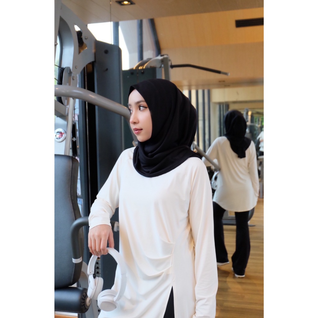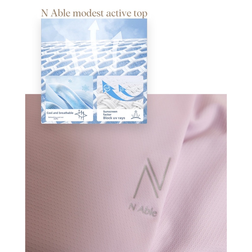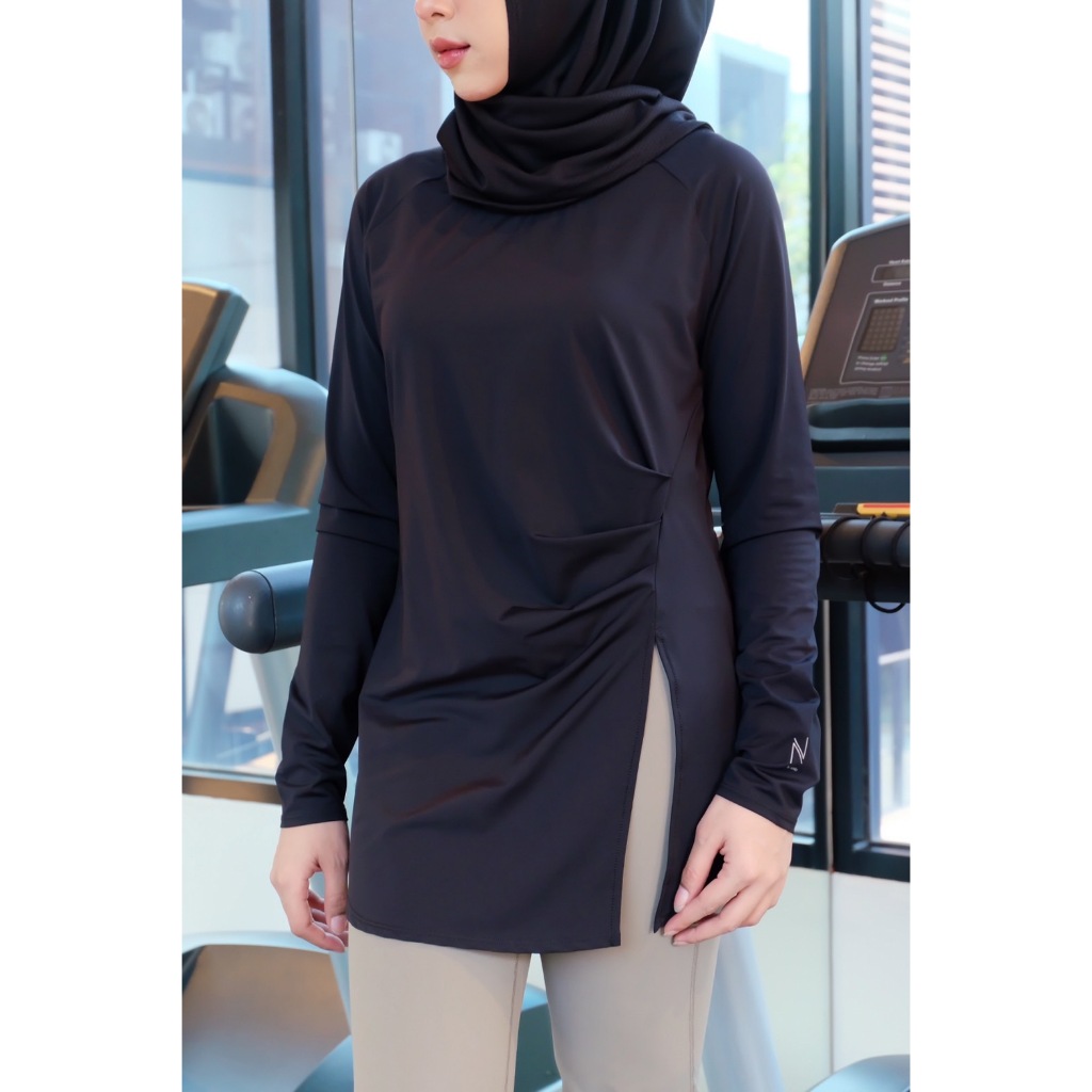 Modest active top 01 เสื้อออกกำลังกายรุ่นแรกของ N Able เนื้อผ้าดี กัน uv ดีไซน์สวย ปิดสะโพก